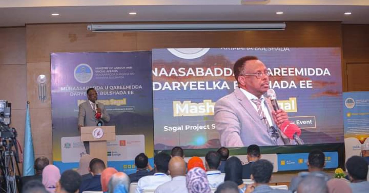 Ku-simaha Ra’iisul Wasaaraha ahna Wasiirka Cadaaladda iyo Arrimaha Dastuurka Xukuumadda Federaalka Soomaaliya Mudane Xasan Macallin Maxamuud ayaa maanta daahfuray Shirka U Qareemidda Daryeelka Bulshada ee Mashruuca SAGAL oo maanta ka furmay Muqdisho.