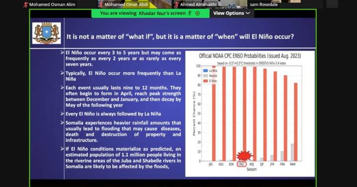 Kulankan oo ay soo qabanqaabisay Hay’adda SoDMA ayaa waxaa looga hadlay qorshaha u diyaargaroowga, isuduwidda hawlaha gargaarka iyo sidii goor hore wax looga qaban lahaa khatarta ka imaan karta fatahaadaha duufaanta El Niño ay u geeysan karto deegaanno badan oo dalka ah.