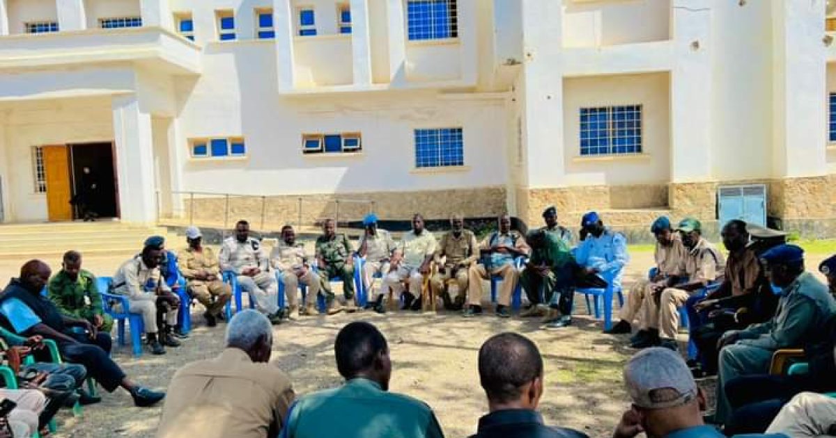 Wasiirka Wasaaradda Amniga Dowlad Goboleedka Koonfur Galbeed Soomaaliya Xasan Cabduqaadir Maxamed iyo Taliyaha Booliska maamulka Koonfur Galbeed Gaashaanle Sare Cabdi Ibraahim Shaamow ayaa si-wadajir ah u shir gudoomiyay kulanka dar-dargelinta amniga Koofur Galbeed oo lagu qabtay magaalada Baydhabo.