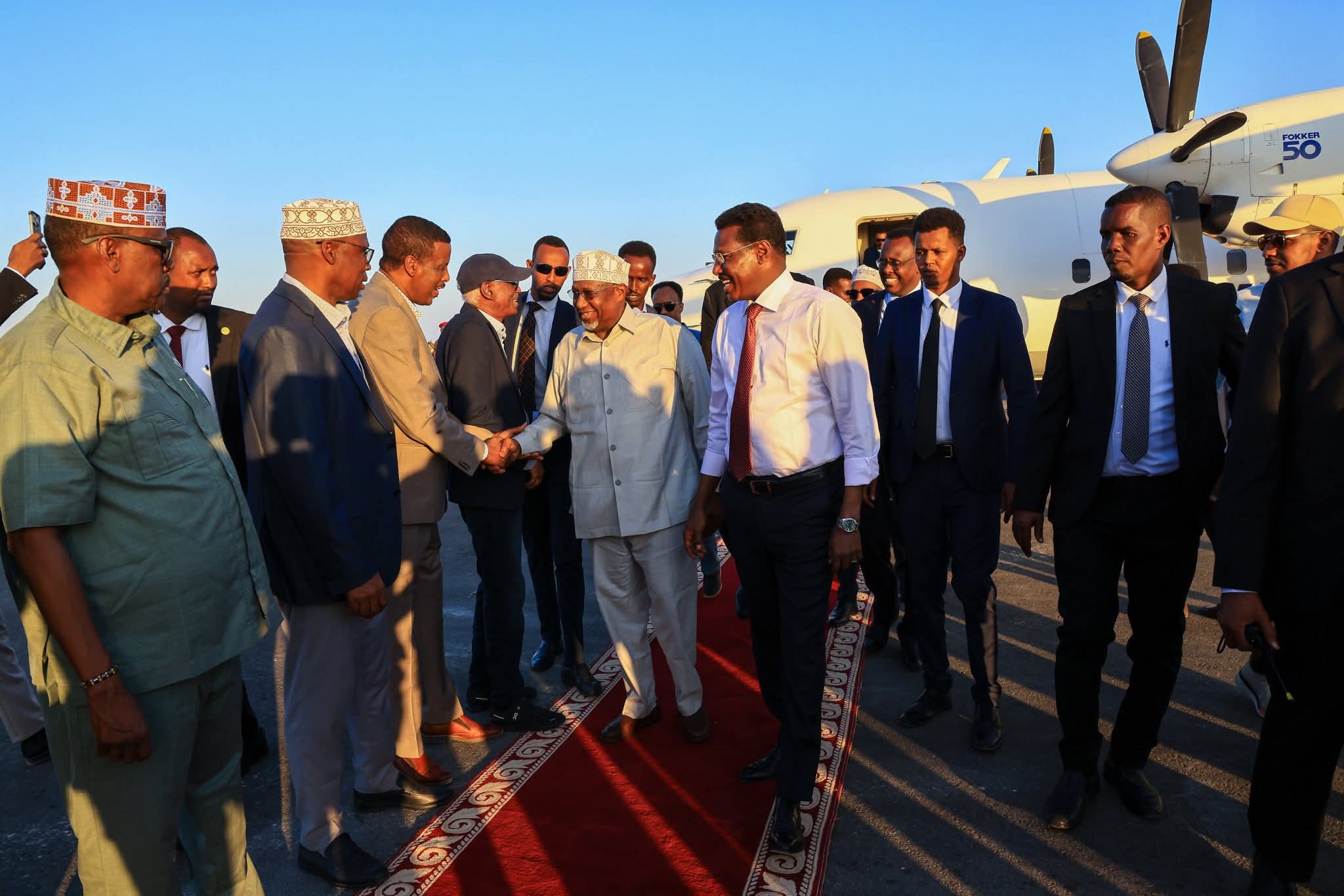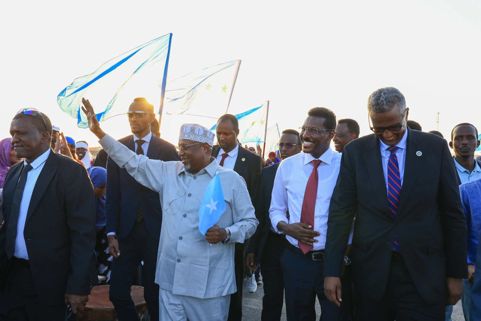 Ku-simaha Madaxweynaha Jamhuuriyadda waxaa garoonka diyaaradaha ee Magaalada Dhuusamareeb ku soo dhoweeyey Madaxweynaha Dowlad Goboleedka Galmudug Mudane Axmed Cabdi Kaariye (Qoor-Qoor), Wasiiro, Xildhibaanno heer federaal iyo heer dowlad goboleed iyo sidoo kale qeybaha kala duwan ee bulshada Magaalada Dhuusamareeb.