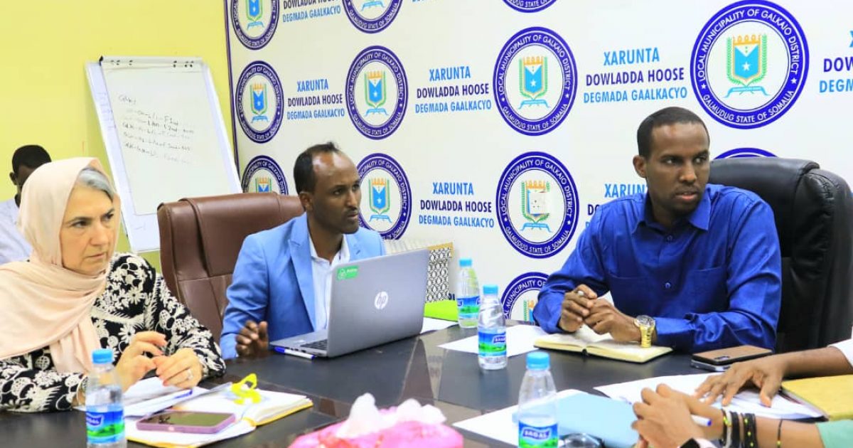 Duqa Degmada Gaalkacyo ee Galmudug Mudane Cabdiraxmaan Sheekh Xasan oo uu weheliyo xoghayaha Dowladda hoose Mudane Cabdiqani Axmed Maxamuud ayaa shir gudoomiyay kulan heerkiisu sareeyo oo u dhexeeyay Dowladda hoose ee Degmada Gaalkacyo iyo hay,adaha Caalamigaa ee hoostaga Qaramada Midoobay iyo kuwa maxaligaa ee ka hawlgala Gaalkacyo kana dhacay xarunta Maamulka Degmada , kaasi oo diiradda lagu saaray, qiimeynta iyo dib u eegista mashaariicda hadda socota, caqabadaha hortaagan , isla xisaabtanka iyo horumarinta Degmada Gaalkacyo.
