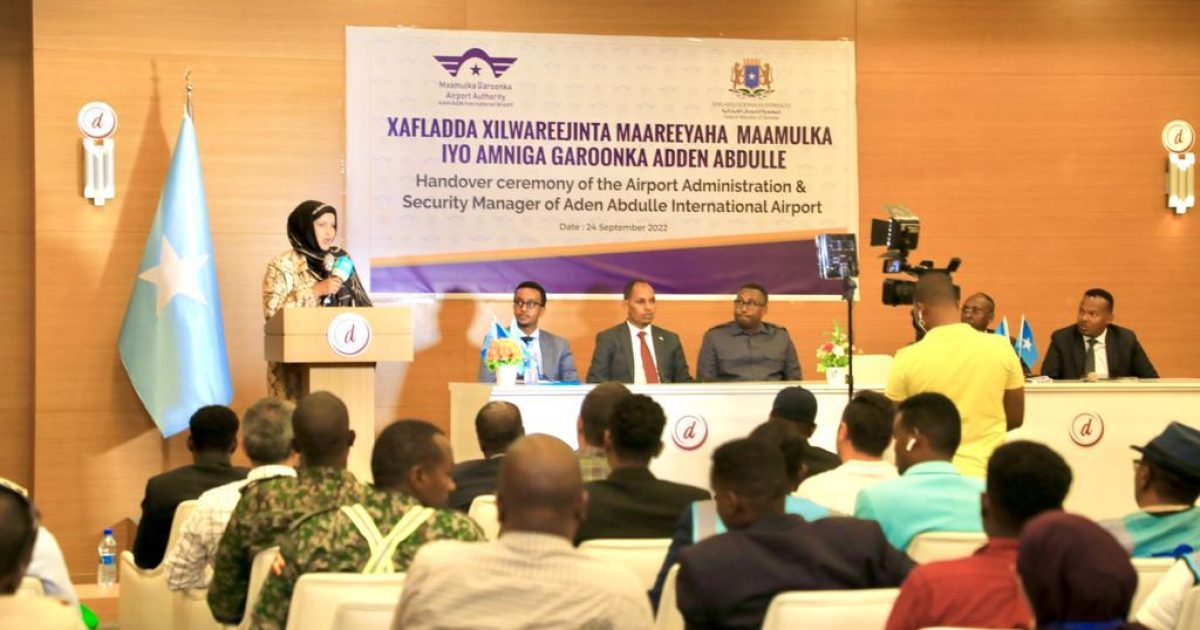 Wasiirka Gaadiidka iyo Duulista Hawada Xukuumadda Federaalka Soomaaliya, Xildhibaan, Fardowsa Cusmaan Cigaal, ayaa u rajeysay maareeyaha cusub inuu Mas’uuliyadda rabbi u fududeeyo, iyadoo sidoo kalana kula dardaarantay dardargelinta howlaha hortabinta u leh horumarinta Garoonka diyaaradaha Aadan Cabdulle ee Caasimadda Muqdisho.