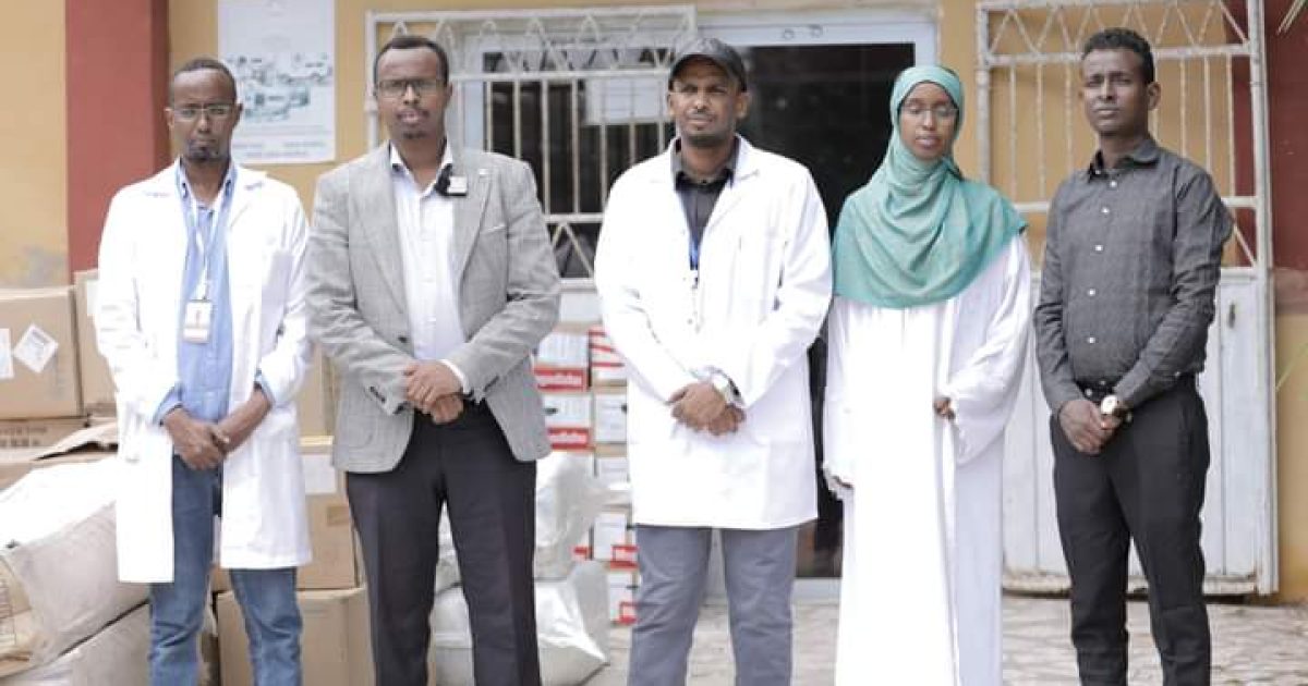 Agaasimaha Isbitaalka Madina Dr. Maxamed Cabdiraxmaan Jaamac (Burtuqal) iyo Agaasimaha Caafimaadka Dr. Cabdullahi Axmed Muuse (Fanax) ayaa goob joog ahaa Munaasabada wareejinta Daawooyinka iyo Teendhooyinka.