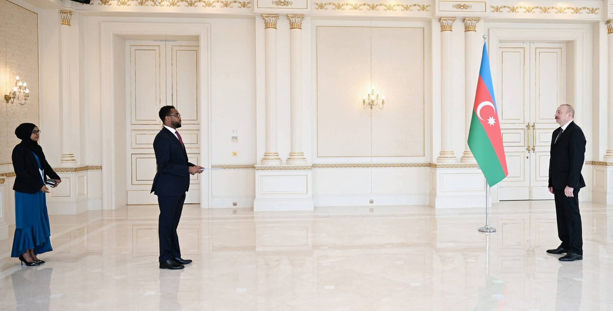 Madaxweynaha  Azerbaijan oo warqadaha aqoonsiga Danjirenino ka guddoomay Safiirka Soomaaliya