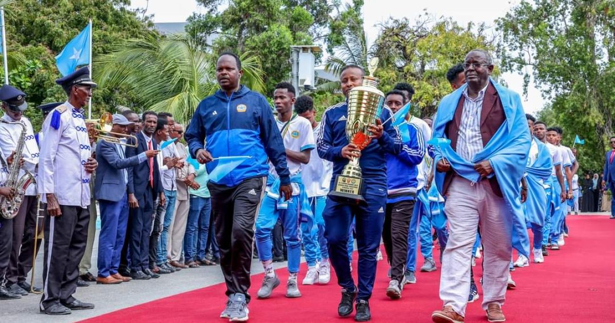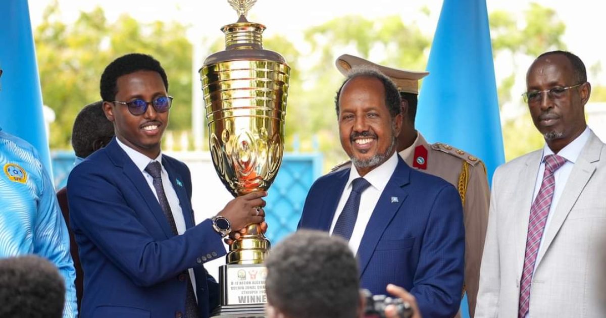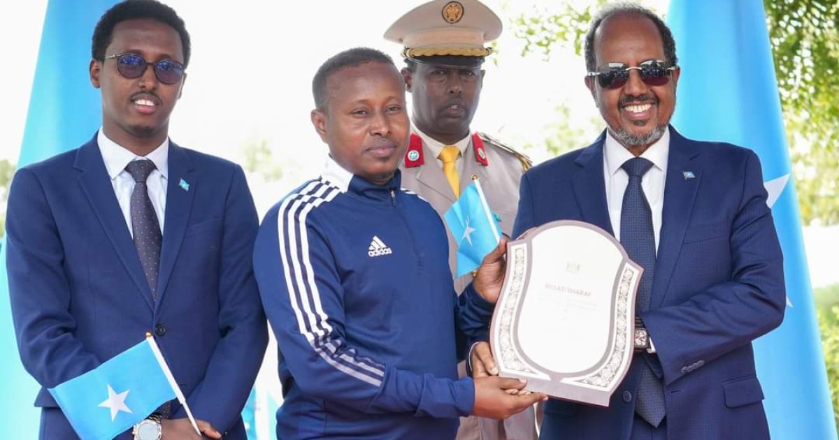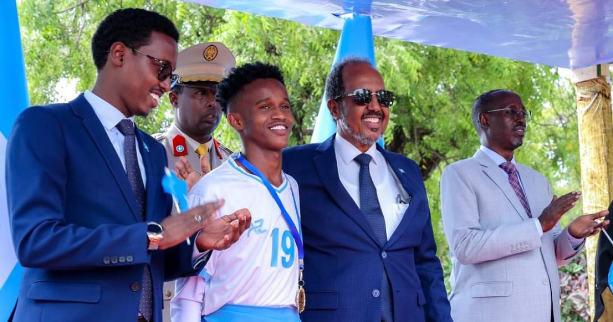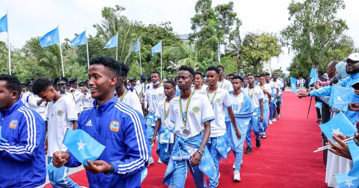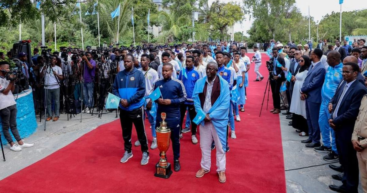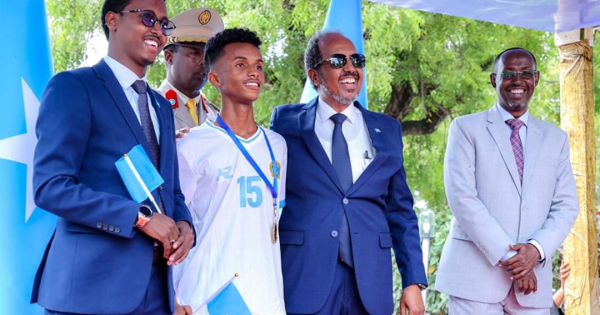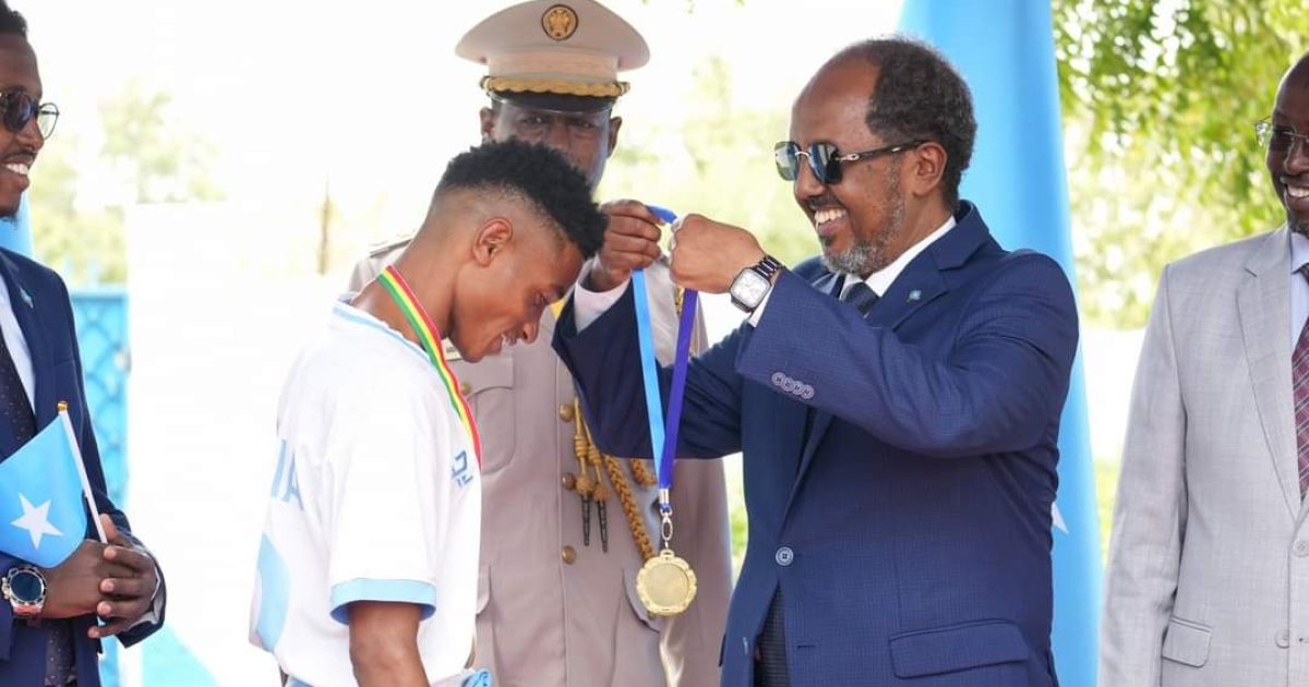 Madaxweynaha Jamhuuriyadda Federaalka Soomaaliya Mudane Xasan Sheekh Maxamuud oo munaasabad maamuus ah ugu sameeyey Madaxtooyada Qaranka, xulka 17 jirrada ah ee ku guuleystay Koobka Isreebreebka Afrika ee Bariga iyo Bartamaha, ayaa ku ammaanay in ay kor u qaadeen magaca umadda Soomaaliyeed, dhallinyarada dalkana ay u fureen iridaha guusha.