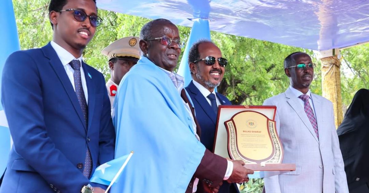 Madaxweynaha oo ay garbihiisa taagan yihiin Guddoomiyaha Gobolka Banaadir Mudane Yuusuf Xuseen Jimcaale iyo Wasiirka Dhallinyarada iyo Ciyaaraha Xukuumadda Federaalka Soomaaliya Mudane Maxamed Barre Maxamuud ayaa hadiyado iyo billad-sharafyo guddoonsiiyey maamulka, macalimiinta iyo ciyaaryahannada xulka 17-jirrada ee guushan taariikhiga ah u soo hoyey qarankeenna.