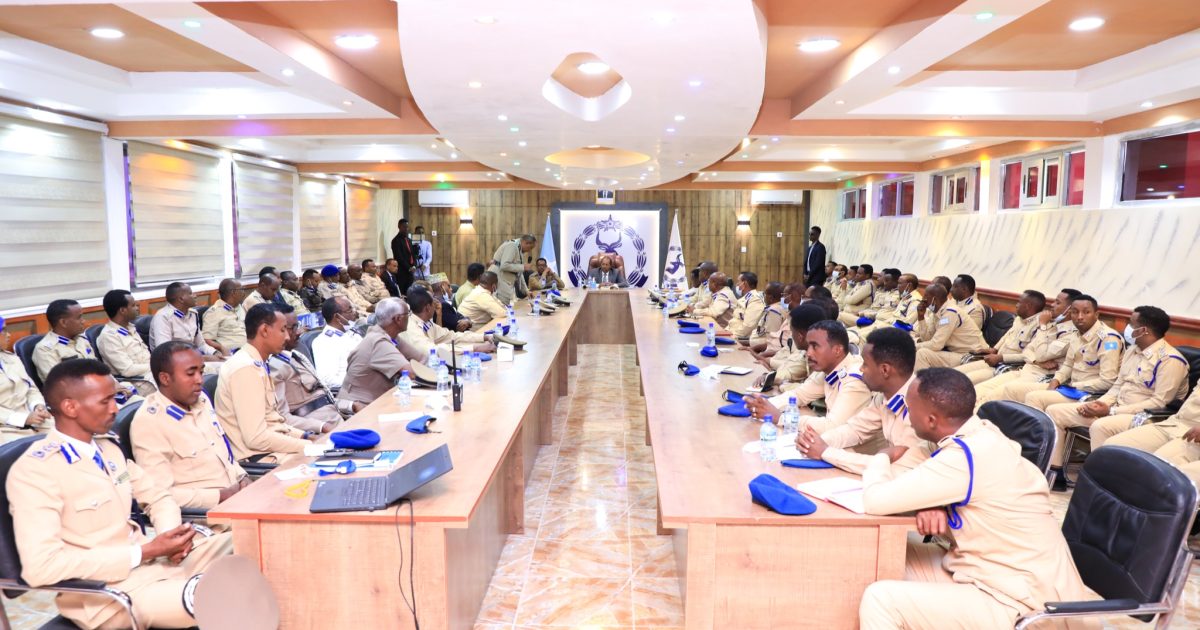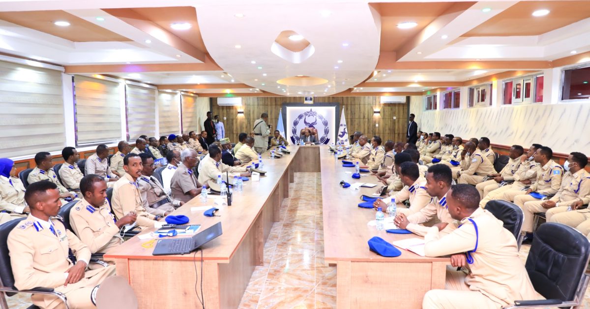 Madaxweynaha Jamhuuriyadda Federaalka Soomaaliya Mudane Xasan Sheekh Maxamuud oo kulan gaar ah la qaatay Taliska guud ee Ciidanka Booliska Soomaaliyeed, Talisyada hoggaannada, Taliyeyaasha ciidamada gaarka ah iyo Taliska qeybta guud ee Booliiska Gobolka Benaadir ayaa ku adkeeyey in ay xoojiyaan dadaallada lagu xaqiijinayo amniga caasimadda iyo guud ahaan dalka, waxa uuna hoosta ka xariiqay Madaxweynuhu muhiimadda ay dowladdu siineyso qorshaha ku saleysan xoojinta wadashqeynta shacabka iyo hay’adaha dowladda ee ay Booliska ugu horreeyaan.