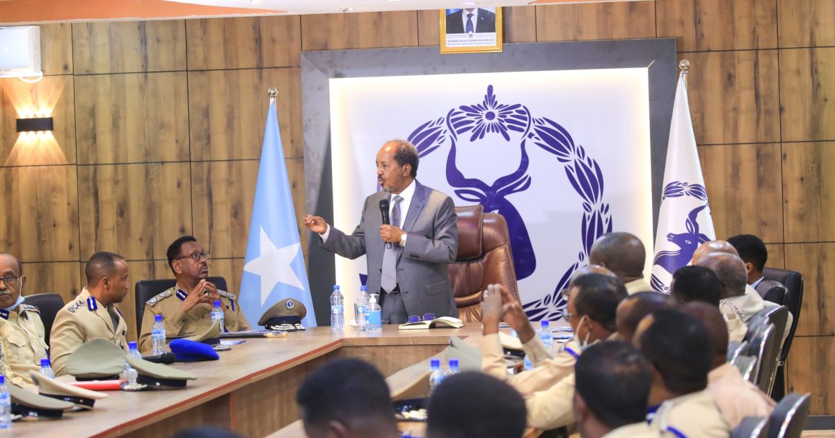 “Dowladdu waxaa ahmiyad gaar ah siineysaa horumarinta shuruuc ciidamada dalka si loo helo sharciyo la jaanqaadi kara hababka casriga ah ee ay waqtigan u shaqeeyaan hay’adaha ammaanka ee caalamka, taas oo fududeyneysa xaqiijinta hadafka guud ee ilaalinta amniga dalka. Ciidamada Booliska Soomaaliyeed waxaa laga rabaa in ay hormuud u noqdaan ilaalinta shuruucda ciidamada, dhaqan-gelinta xeerarka guud ee dalka, dhowrista sharafta, karaamada iyo xorriyada muwaadiniinta Soomaaliyeed xilliyada shaqada Qaranka.”Ayuu yiri Madaxweyne Xasan Sheekh.