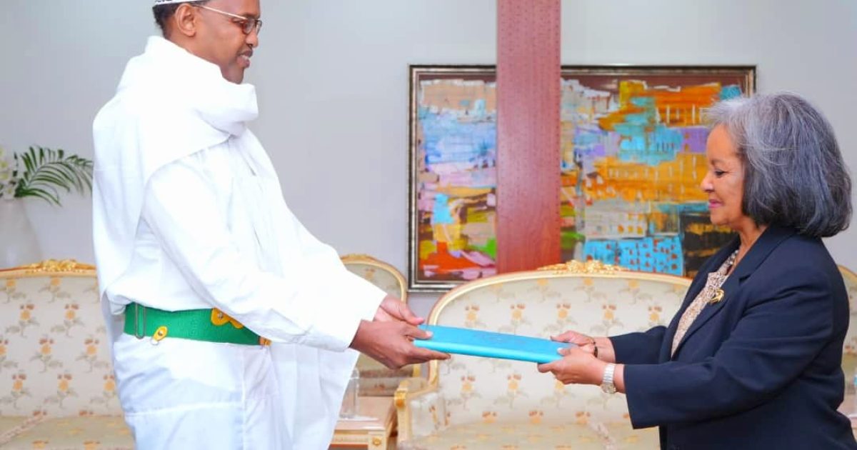 Madaxweynaha Dawladda Ethiopia Sahle Work Zewde ayaa si rasmi ah warqadaha aqoonsiga Danjirenimo ka guddoontay Safiirka Jamhuuriyadda Federaalka Soomaaliya ee dalka Ethiopia Mudane Cabdullaahi Maxamed Warfaa.