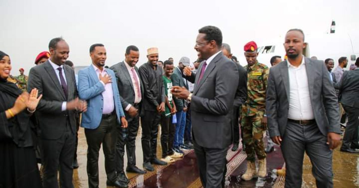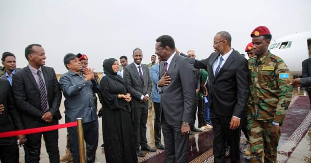 Madaxweynaha Galmudug iyo wafdigiisa oo ka kooban xubno ka tirsan labada gole ee Galmudug ayaa waxaa garoonka diyaaradaha Shaati Gaduud kusoo dhaweeyay Madaxweynaha Dowlad Goboleedka Koonfur Galbeed Mudane C/Casiis Xasan Maxamed (Laftagareen), goloyaasha dowladda, maamulka Baydhabo iyo qeybaha kala duwan ee bulshada.