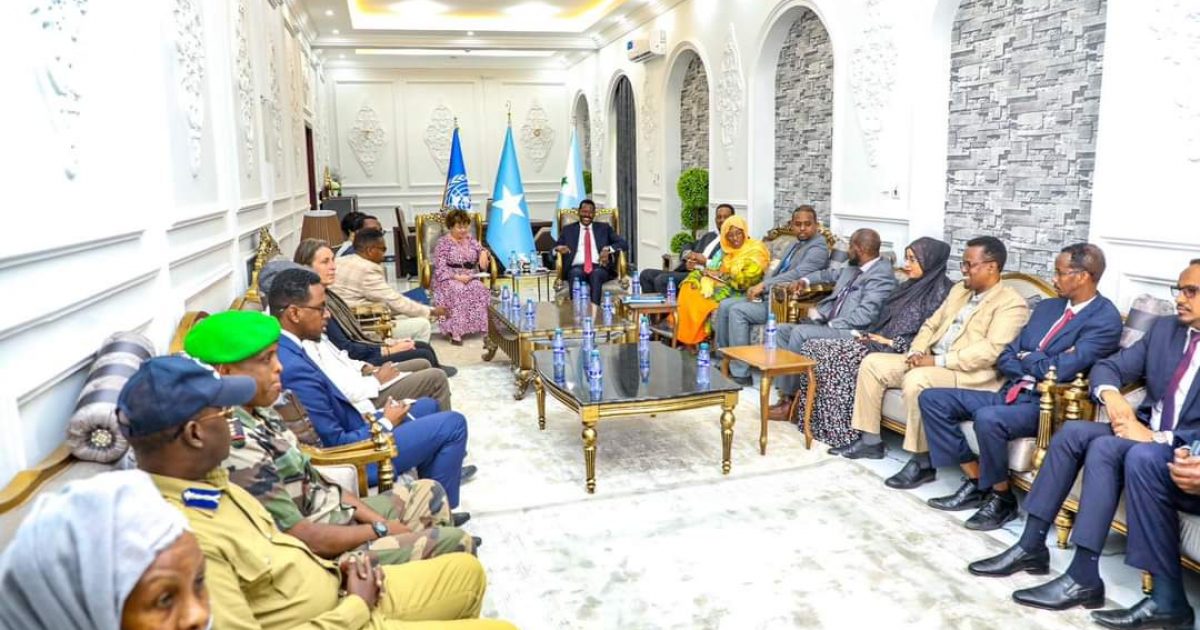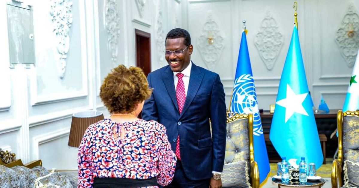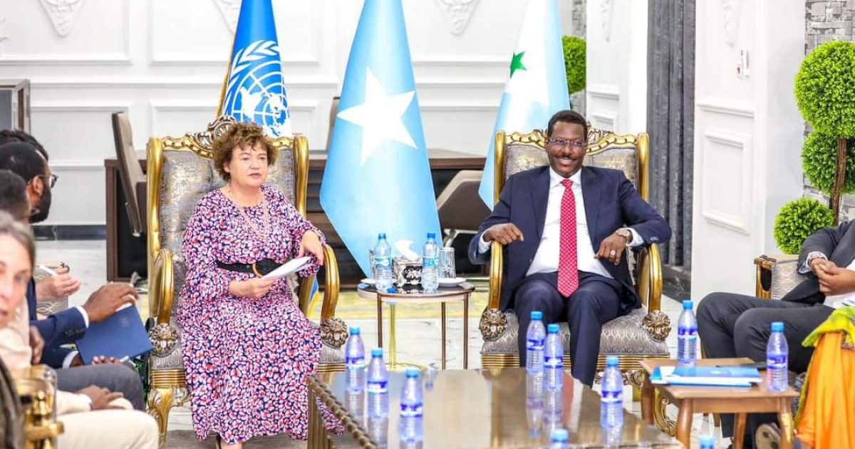 Madaxweynaha Dowladd Galmudug mudane Axmed Cabdi Kaariye, ayaa qasriga Madaxtooyadda Dowladda Galmudug ee Dhuusamarreeb kusoo dhaweeyay Ergeyga cusub ee Qarammada Midoobe ee Soomaaliya Danjire Catriona Laing iyo wafdi ay hoggaaminayso.