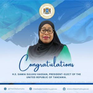 “Waxaan u dirayaa hambalyo diirran Marwo Saamiya Suluhu oo dib loogu doortay xilka Madaxweynaha Jamhuuriyadda ee Tanzaaniya. Guusheedu waxay muujineysaa kalsoonida iyo aaminaadda ay shacabka Tanzaaniya u hayaan.