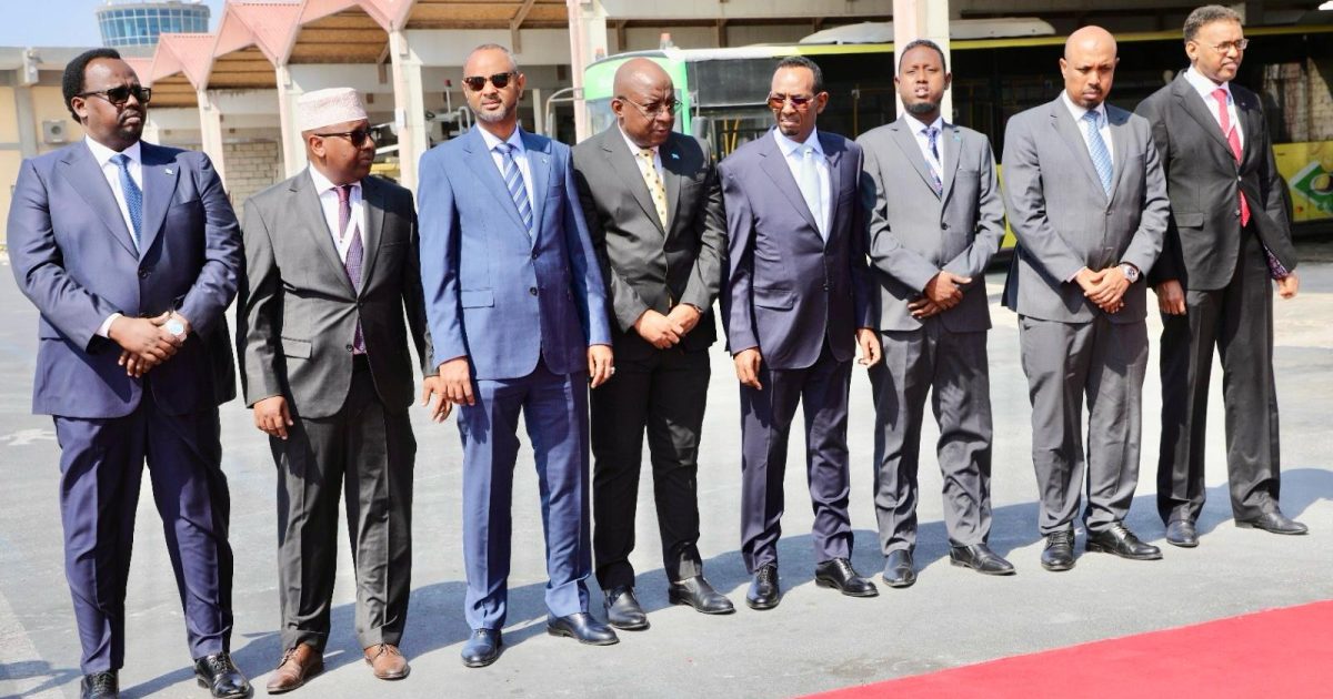 Madaxweynaha Jamhuuriyadda Federaalka Soomaaliya Mudane Xasan Sheekh Maxamuud ayaa Garoonka Diyaaradaha ee Aadan Cadde ee magaalada Muqdisho ku soo dhoweeyay Ra’iisul Wasaaraha Jamhuuriyadda Dimoqraadiga ee Federaalka Ethiopia, Mudane Abiy Axmed Cali iyo wafdi uu hoggaaminayo oo booqasho rasmi ah ay maanta uga bilaabatey Soomaaliya.