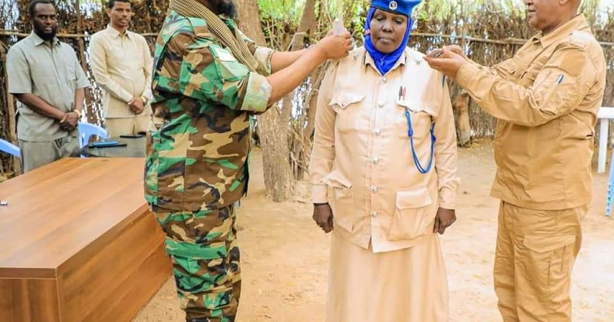 Ugu danbayntii Madaxweynaha ayaa darajada labo xidigle u dalacsiiyay sargaalad Miski Maxamed Cali oo katirsan Ciidamada booliska Degmada kadib shaqo wanaageeda iyo Sida hufan ee ay ugu adeegto bulshada.