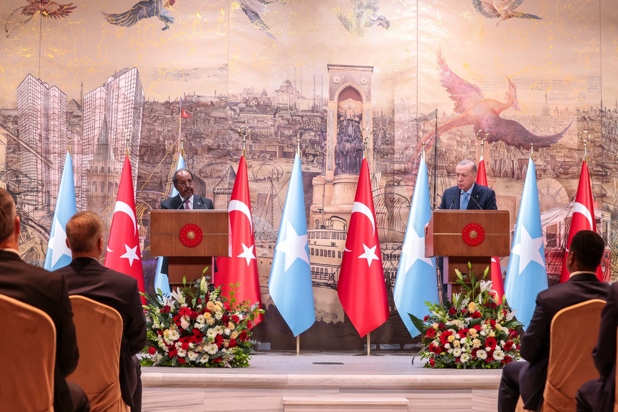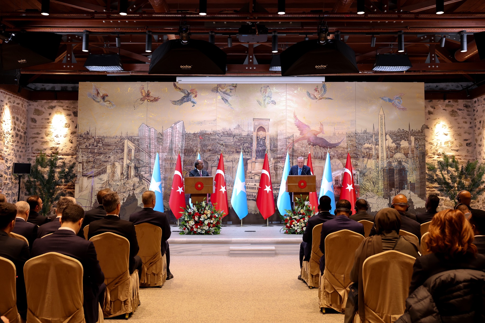 Madaxweynaha Jamhuuriyadda Federaalka Soomaaliya Mudane Xasan Sheekh Maxamuud iyo dhiggiisa Jamhuuriyadda aan walaalaha nahay Türkiye Mudane Recep Tayyip Erdoğan ayaa magaalada Istanbuul ku qabtay shir jaraa’id oo wadajir ah, kaddib wada-hadallo qotodheer oo ay si gaar ah u yeesheen.
