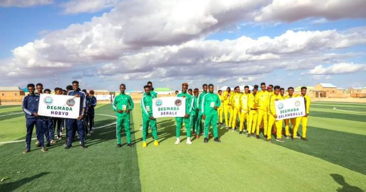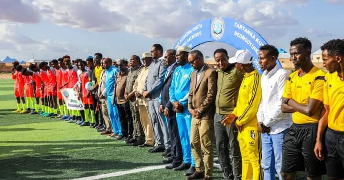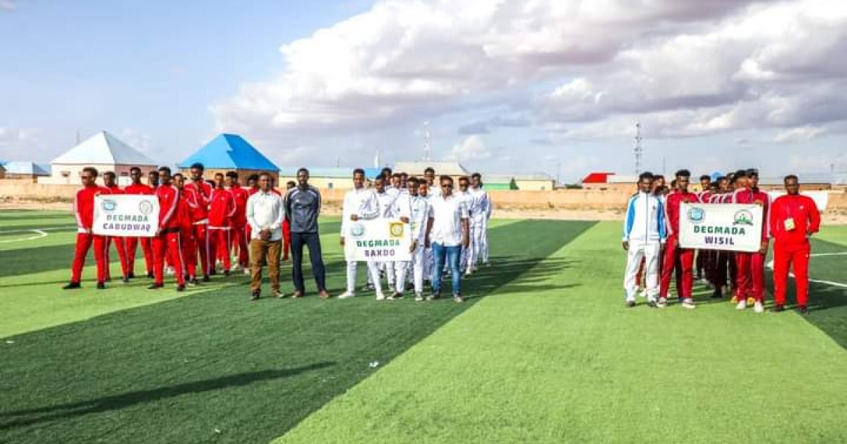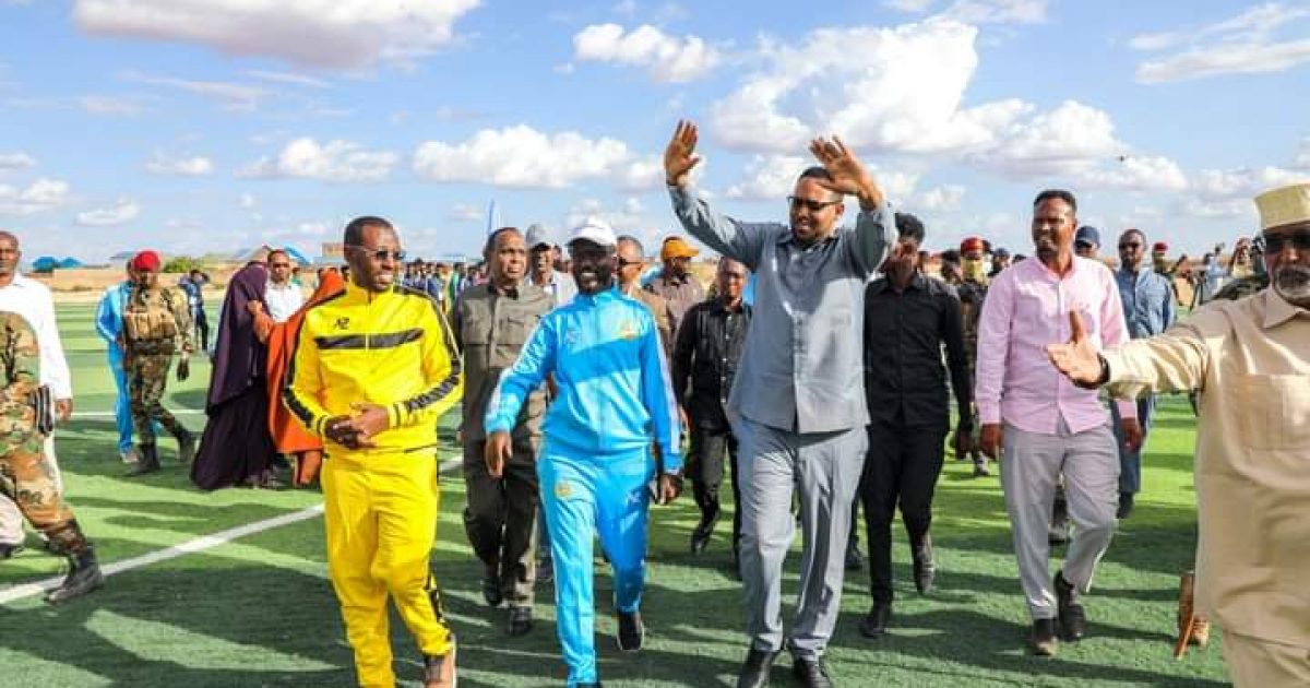 Madaxweyne ku-xigeenka Dowlad Goboleedka Galmudug Mudane Cali Daahir Ciid oo ay wehliyaan Wasiirka dhallinyarada iyo ciyaaraha Galmudug ayaa magaalada Cadaado ka daahfuray koobka kubadda cagta degmooyinka Galmudug.