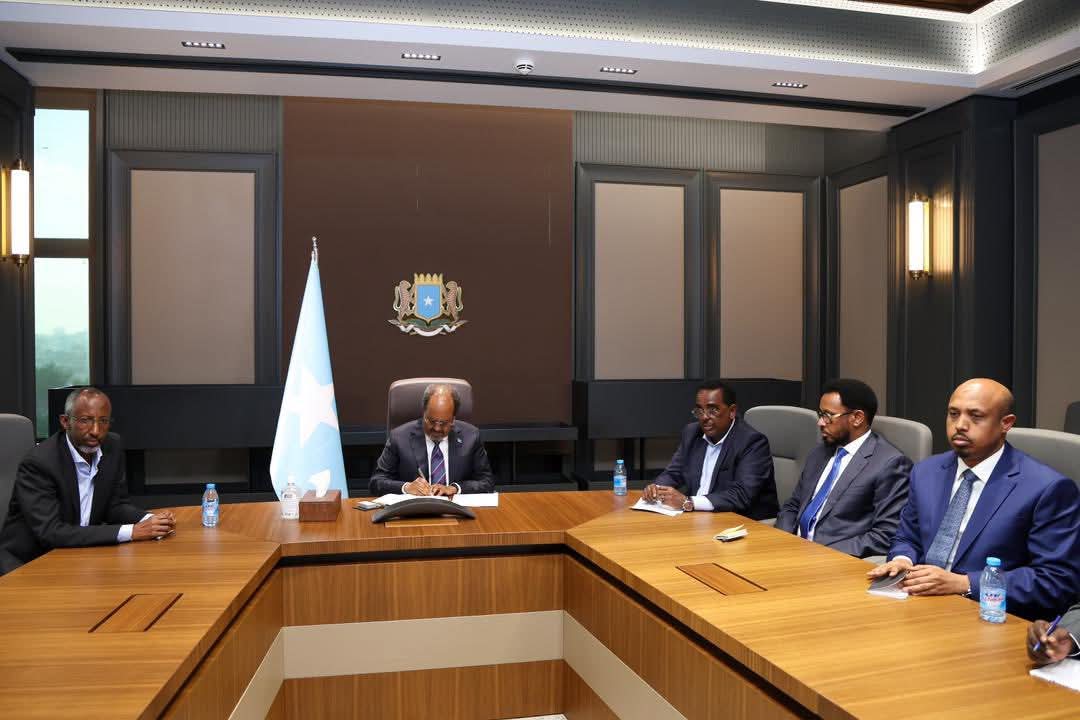 Madaxweynaha Jamhuuriyadda Federaalka Soomaaliya, Mudane Xasan Sheekh Maxamuud ayaa Xafiiskiisa ku qaabilay, Madaxda 20-ka Urur siyaasadeed ee ka qayb galay, Doorashadii Taariikhiga ahayd ee Golaha deegaanka Degmooyinka Gobolka Benaadir 25-kii bishan ka dhacday magaalada Muqdisho.