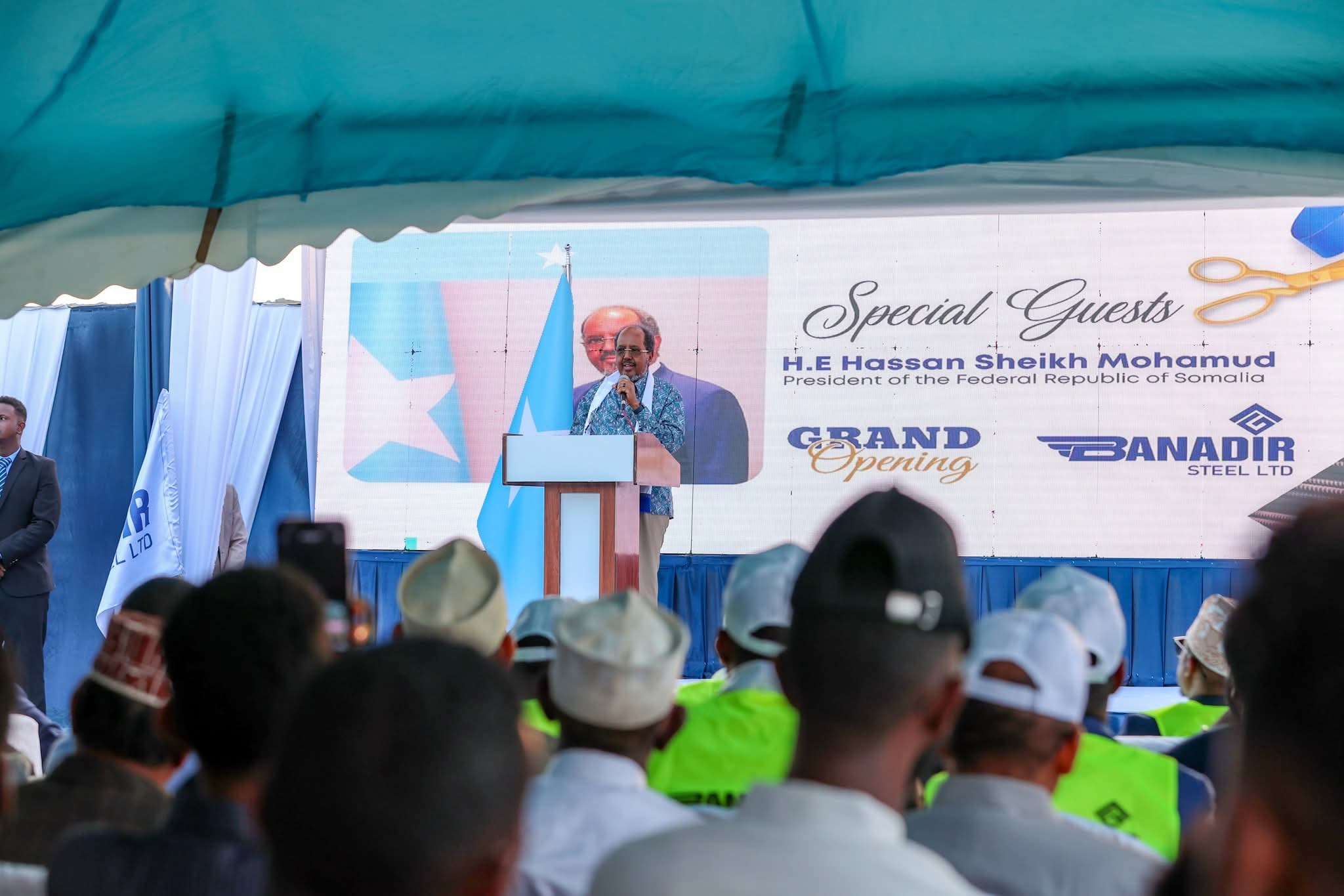 Madaxweynaha Jamhuuriyadda Federaalka Soomaaliya Mudane Xasan Sheekh Maxamuud oo ka duulaya ahmiyadda ay leedahay xoojinta Wax-soosaarka dalkeenna ayaa xarigga ka jaray Warshadda Banaadir Steel oo ah Warshad cusub oo soo saarta Biraha Shubka ee lagu dhiso Guryaha, iyadoo isticmaaleysa dib u warshadeynta biraha duugoobay.