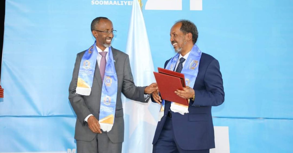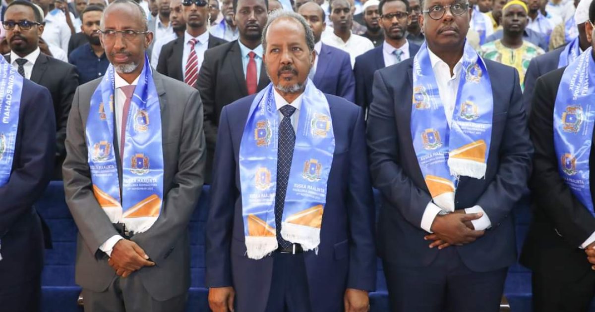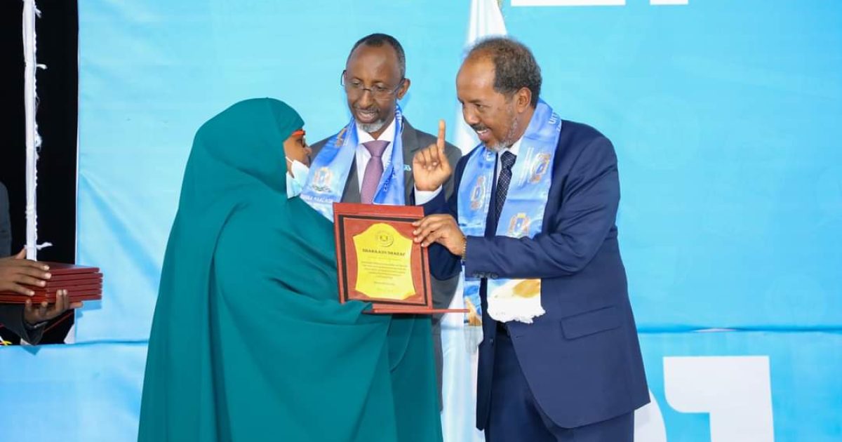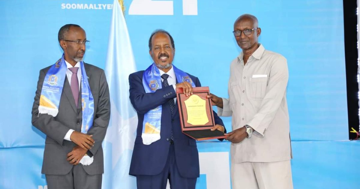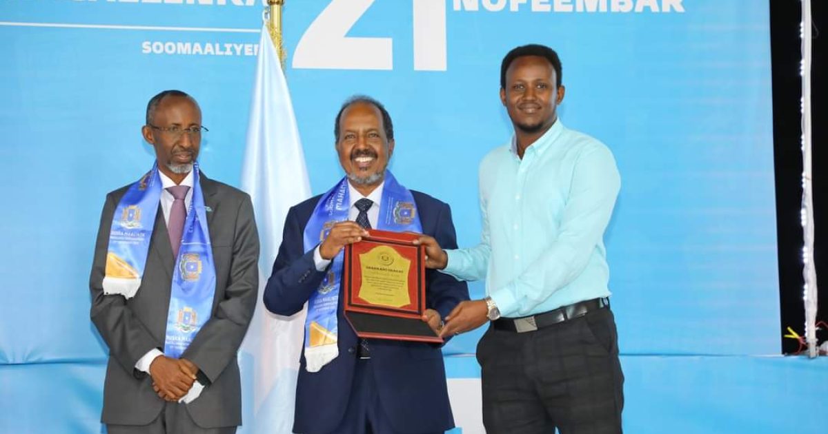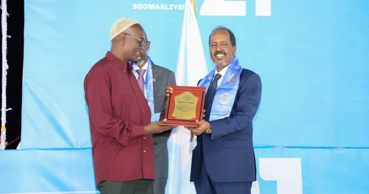 Madaxweynaha Jamhuuriyadda Federaalka Soomaaliya Mudane Xasan Sheekh Maxamuud oo Tiyaatarka Qaranka kaga qeyb galay munaasabadda Maalinta Macallinka Soomaaliyeed,ayaa bareyaasha iyo bahda waxbarashada Soomaaliyeed ugu hambalyeeyey maalintan qiimaha badan.