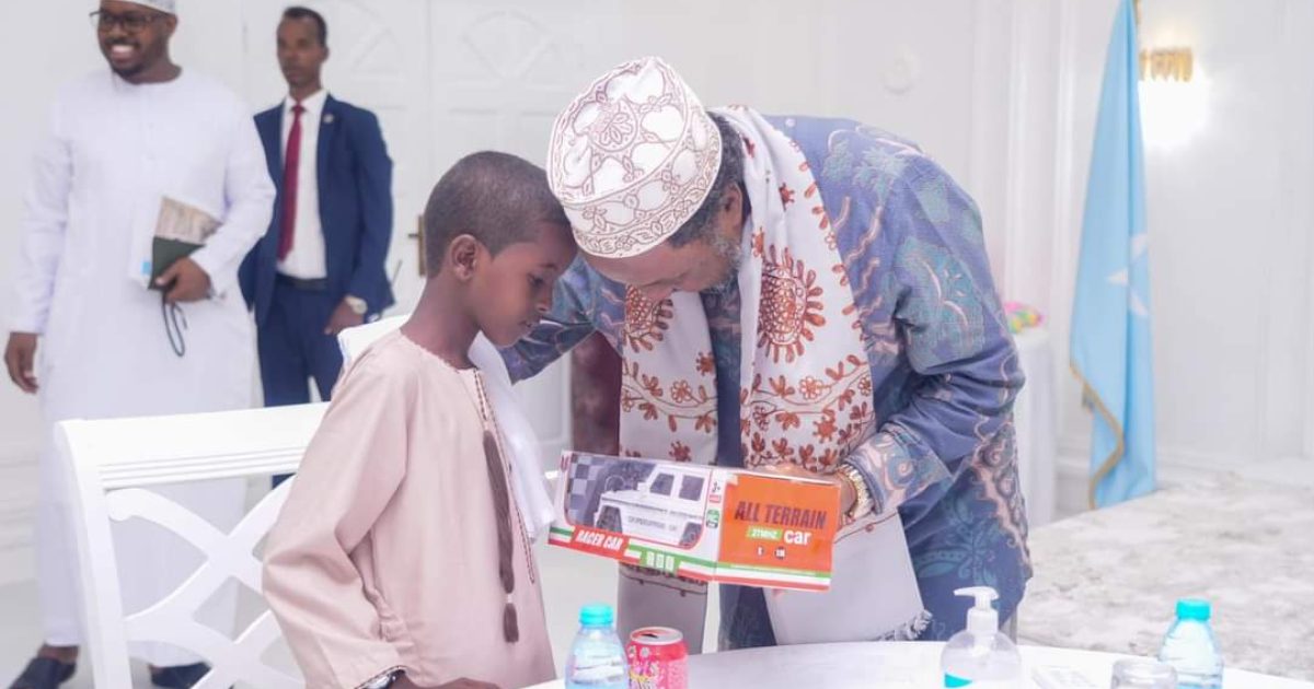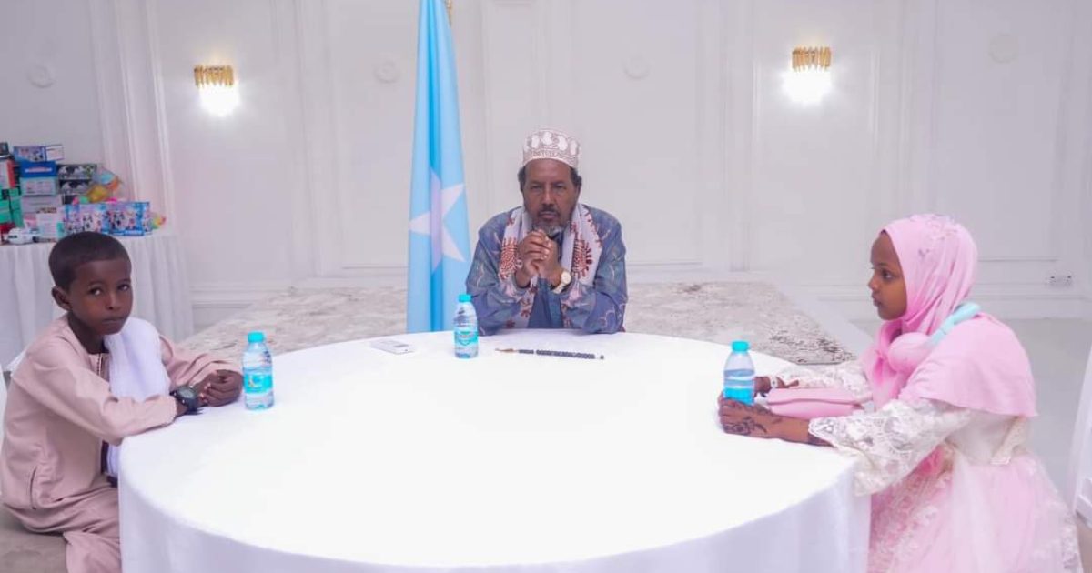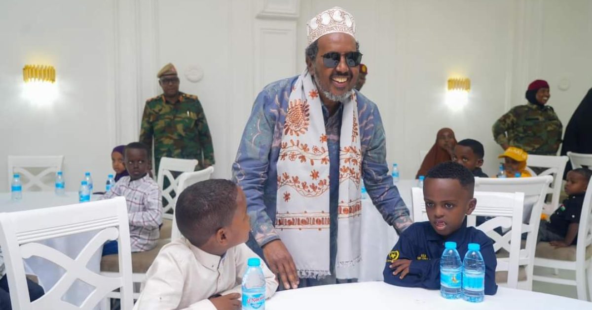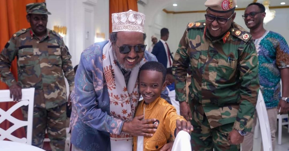 Madaxweynaha Jamhuuriyadda Federaalka Soomaaliya Mudane Xasan Sheekh Maxamuud oo maanta farxadda Munaasabadda Ciidul fidriga la qaatay qaar ka mid carruurta Halyeeyadii ku shahiiday dagaalka dalka looga xoreynayo Khawaarijta ayaa tilmaamay in dowladdu ay joogteyn doonto xuquuq u gaar ah caruurta agoonta Ciidamada Qalabka Sida.