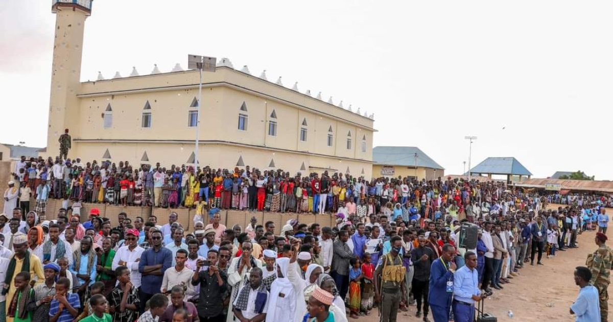 Madaxweynaha jamhuuriyadda oo boqolaalka ka mid ah bulshada magaalada Baxdo kula hadlay fagaaraha Masjika Al-nuur oo ah saldhigga halganka diiniga ah ee hortagga figirka guracan iyo gumaadka Khawaarijta Al-shabaab ayaa ku bogaadiyay sida naf hurnimada ah ee ay ugu guntadeen difaaca dhulkooda, waxa uuna adkeeyay muhiimadda in waqti kooban lagu xoreeyo deegaanada Galmudug ee ku haray gacanta cadowga.