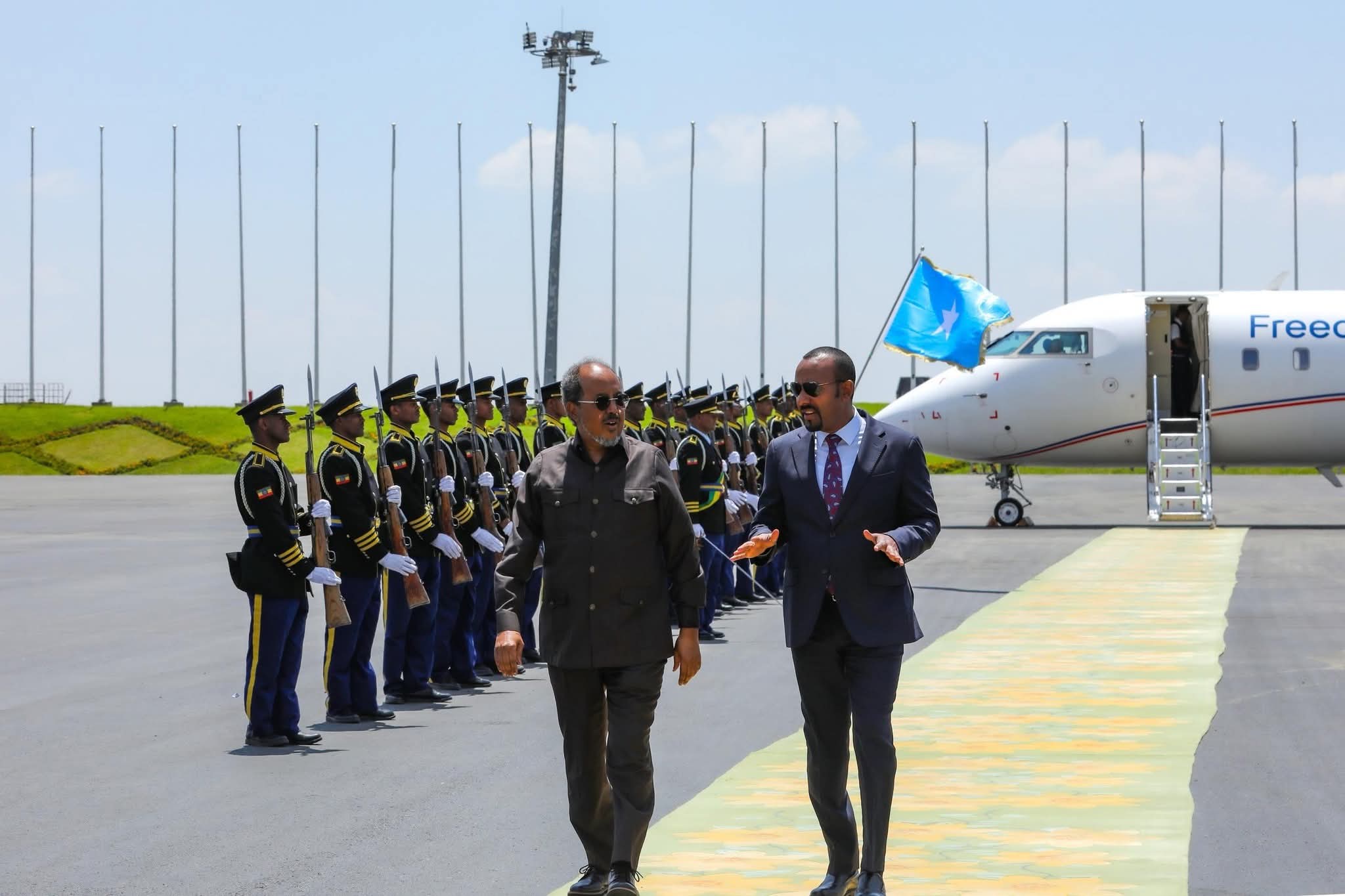 Madaxweynaha Jamhuuriyadda Federaalka Soomaaliya Mudane Xasan Sheekh Maxamuud oo gaaray magaalada Addis Ababa ee caasimadda dalka Itoobiya ayaa kulan la qaatay Ra’iisul Wasaaraha dalkaasi Mudane Abiy Ahmed.
