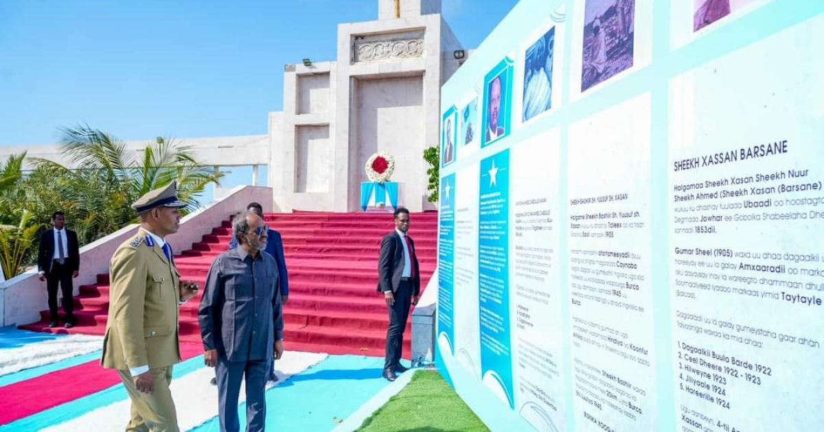Madaxweynaha oo muujinaya sharafta iyo qiimaha ay Ummadda Soomaaliyeed ka mudan yihiin geesiyaashii u soo halgamay Xorriyadda dalka, ayaa mid mid u dul istaagay tabbeelayaal lagu xardhay taariikhda qaar ka mid ah Halgameyaashaasi, isaga oo shacabka Soomaaliyeed ku adkeeyay ilaalinta midnimada, dal jaceylka, wadajirka iyo isku duubni sal adag leh, si looga miradhaliyo dhaxalkii ay ka tageen ee ilaalinta gobannimadeenna.