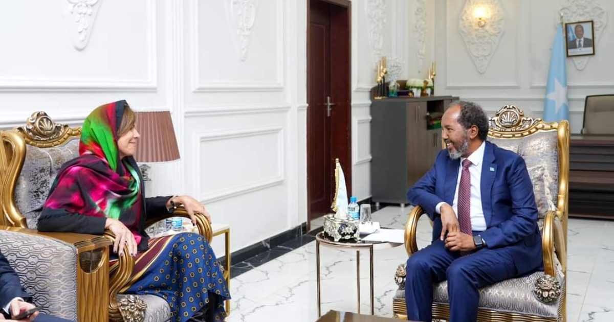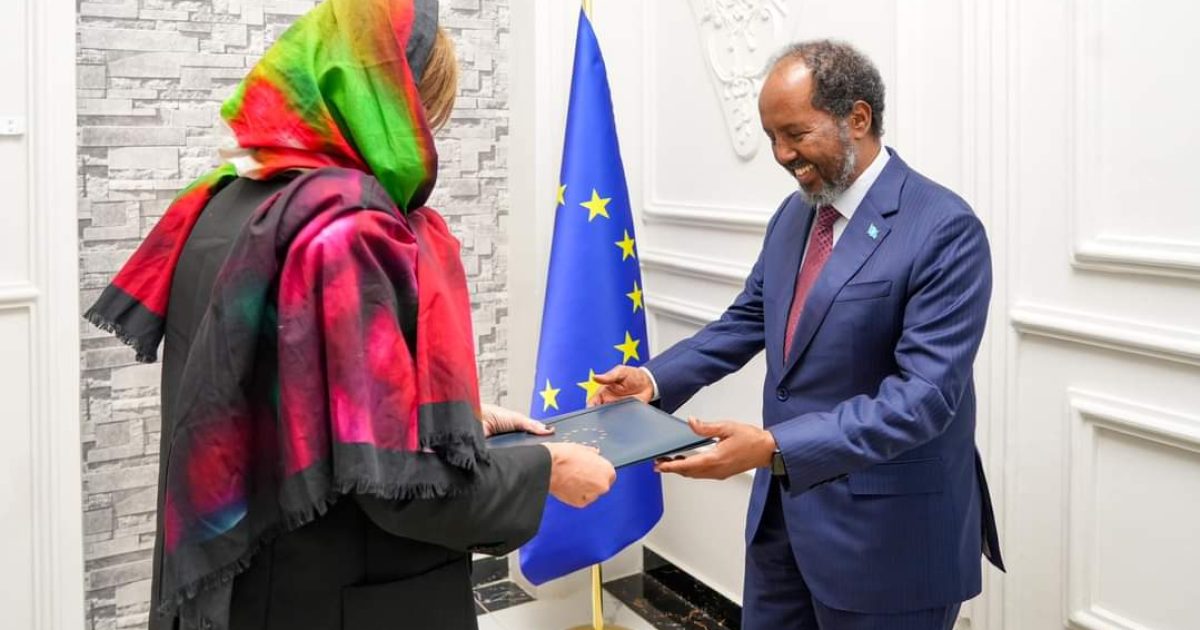 Madaxweyne Xasan Sheekh iyo Danjire Karin ayaa ka wada hadlay xoojinta taageerada Midowga Yurub ay siiyaan Soomaaliya, gaar ahaan howgallada sifeynta Khawaarijta iyo sigidda amniga dalka, Madaxweynaha ayaana u xaqiijiyay Danjiraha in Dowladda Federaalka Soomaaliya ay si buuxda ula shaqeyn doonto, una fududayn doonto gudashada waajibaadka diblumaasiyadeed ee loo igmaday.