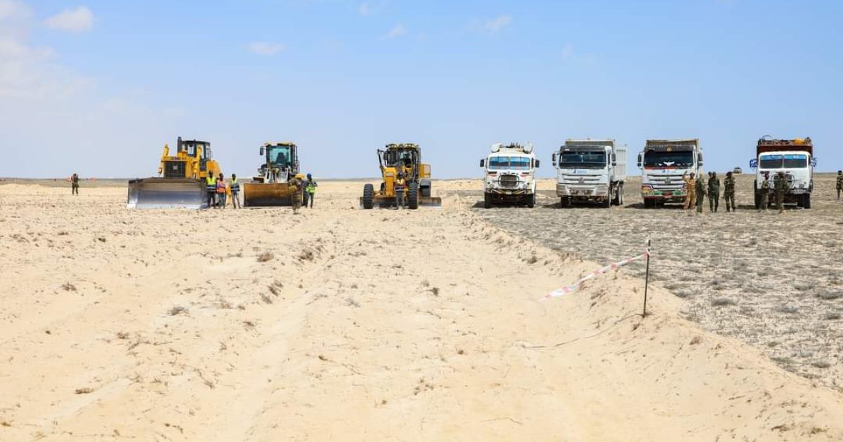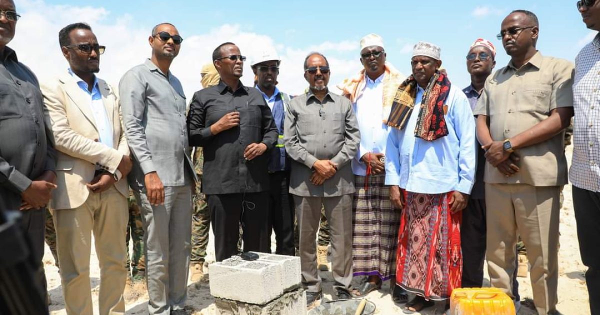 Madaxwaynaha oo uu wehliyo Madaxweynaha Dawlad Goboleedka Hirshabeele Mudane Cali Guudlaawe Xuseen, ayaa sidoo kale dhagax dhigay dhismaha garoon diyaaradeed oo ay yeelan doonto Degmada Cadale.