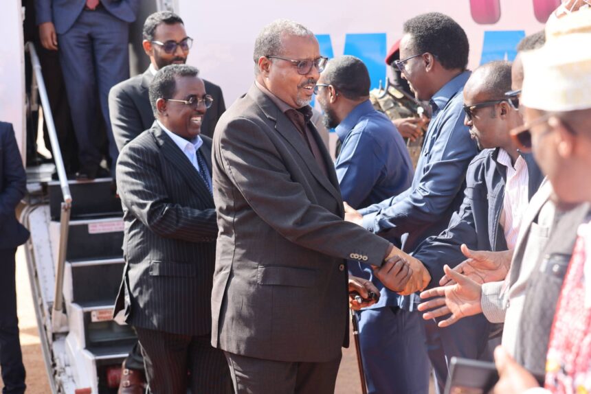 Wafdiga Guddoomiye ku xigeenka, oo ay ka mid ahaayeen Wasiirro ka tirsan Xukuumadda Federaalka Soomaaliya, Xildhibaanno ka tirsan labada Aqal ee Baarlamaanka, siyaasiyiin iyo masuuliyiin kale, ayaa si diirran loogu soo dhoweeyay garoonka diyaaradaha ee magaalada Galdogob.