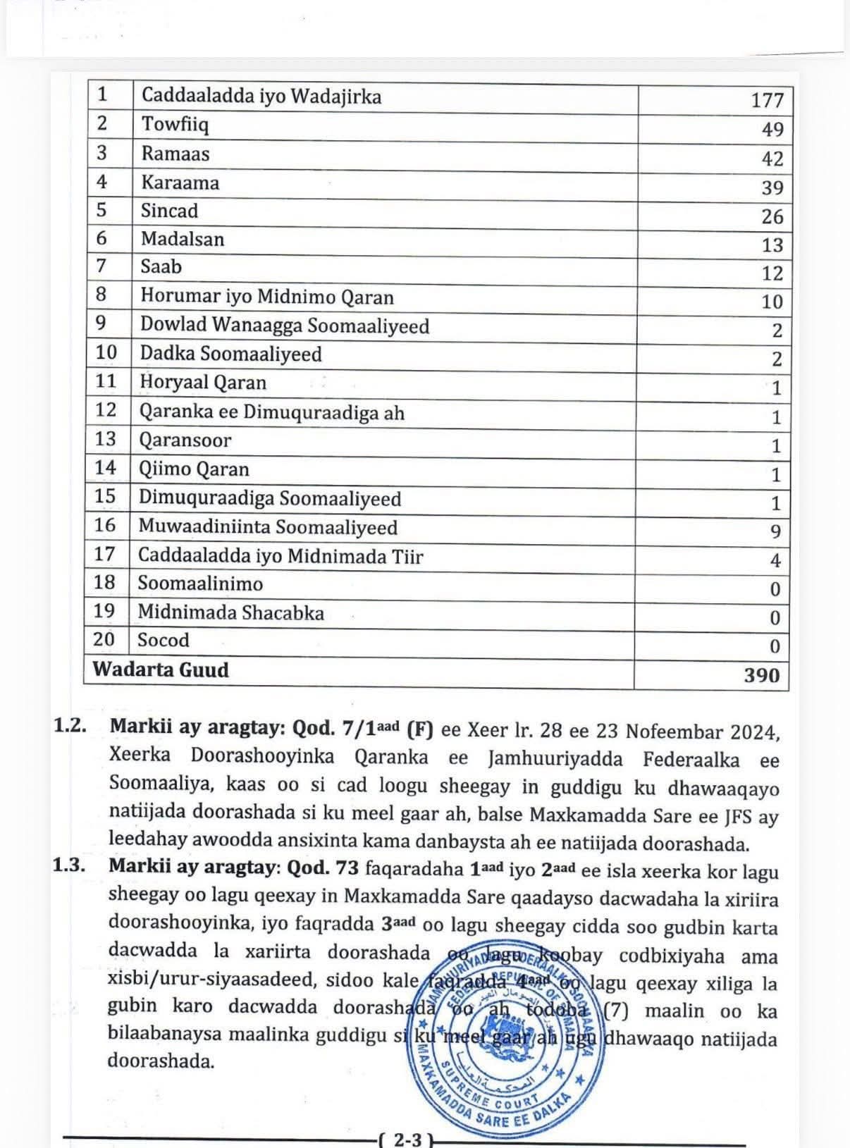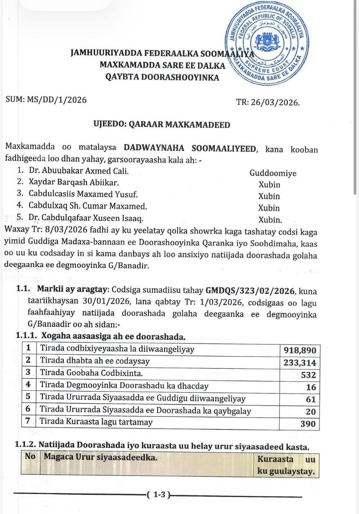Maxkamadda Sare ee Jamhuuriyadda Federaalka Soomaaliya ayaa si kama dambeys ah u ansixisay natiijada doorashadii golayaasha deegaanka Gobolka Banaadir, oo...