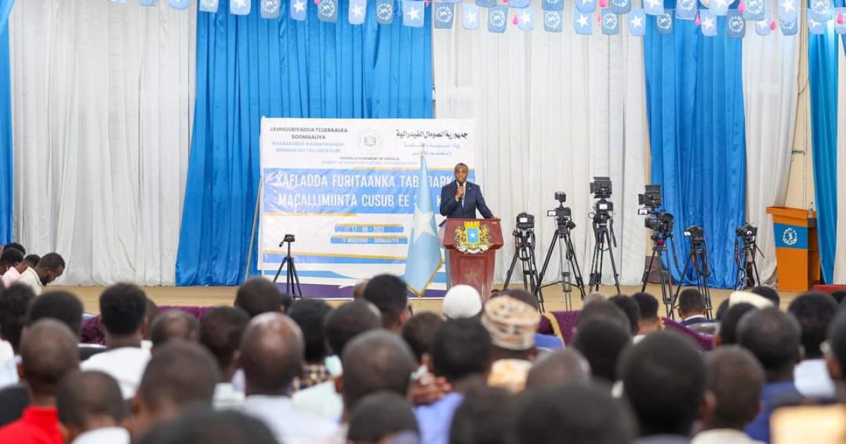 Ra’iisul Wasaaraha Xukuumadda Jamhuuriyadda Federaalka Soomaaliya Mudane Xamsa Cabdi Barre, ayaa maanta tababar u furay Macallimiinta cusub ee 3,000 ah ee dhawaan dowladda Soomaaliya ay qaadatay, kuwaasi oo shaqo geli doona bisha Sebtember ee sanadkaan.