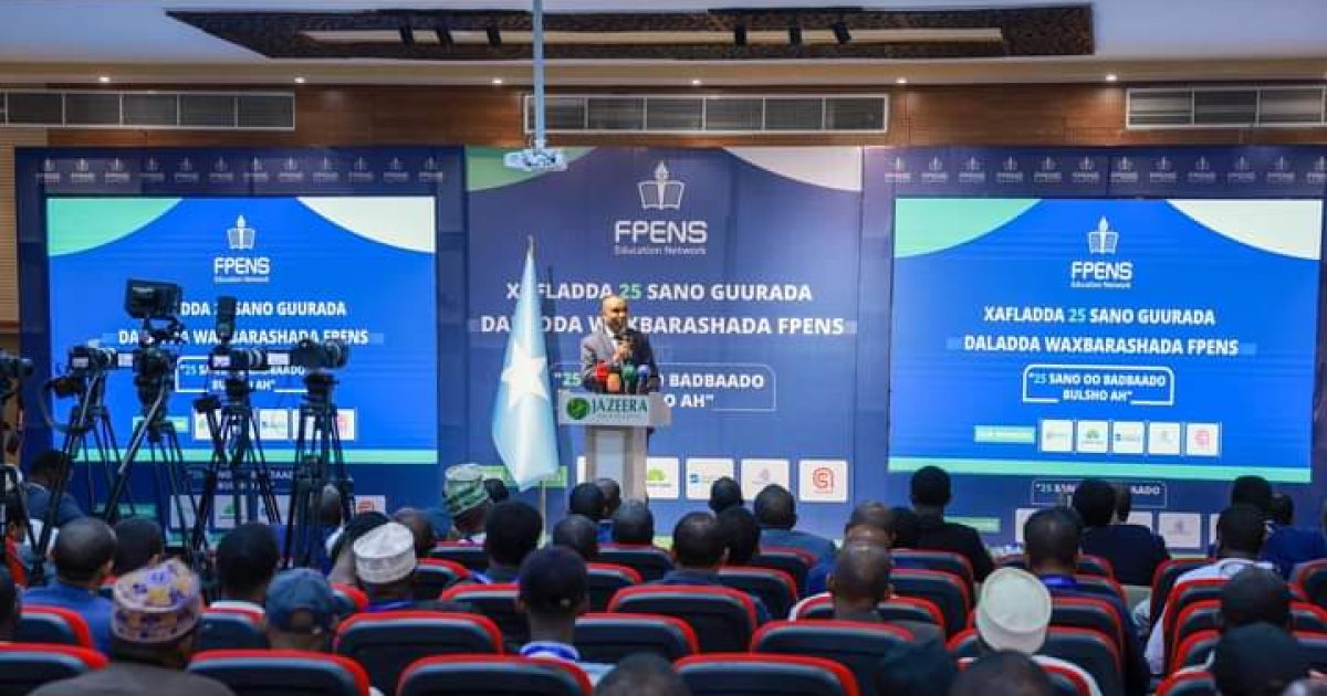 Ra’iisul Wasaaraha Xukuumadda Jamhuuriyadda Federaalka Soomaaliya, Mudane Xamsa Cabdi Barre, oo maanta ka hadlayay munaasabad lagu xusayay sanad guuradii 25aad ee aasaaska dalladda waxbarashada FPENS, ayaa sheegay in Xukuumadda DanQaran ay ahmiyad weyn siinayso horumarinta waxbarashada dalka.