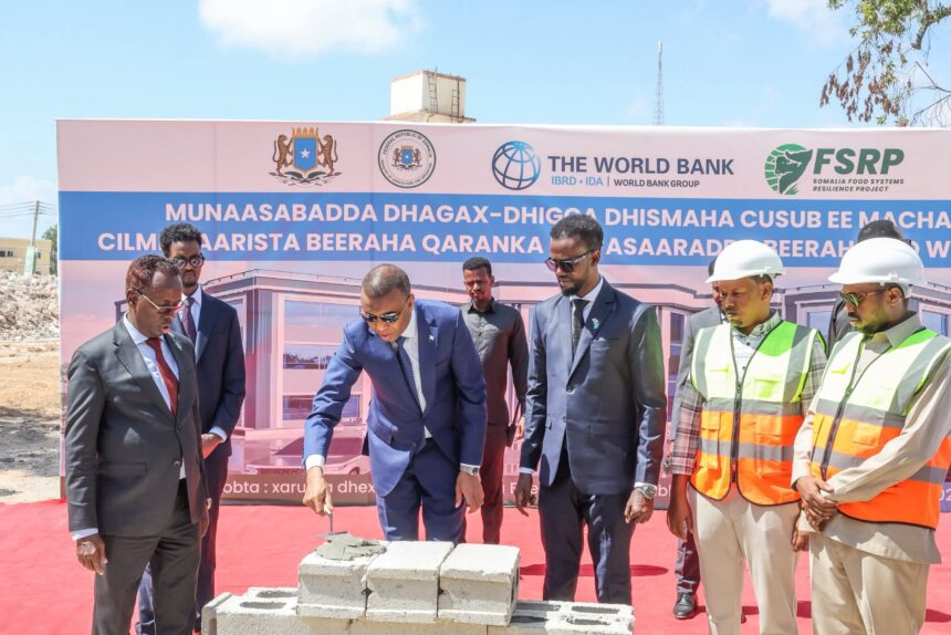 RADIO MUQDISHO:-Ra’iisul Wasaaraha Xukuumadda Jamhuuriyadda Federaalka Soomaaliya, Mudane Xamsa Cabdi Barre, oo dhagax-dhigay dhismaha cusub ee Machadka Cilmi-baarista Beeraha Qaranka, ayaa sheegay in uu rajo weyn ka qabo machadkani in uu soo saari doono khubaro Soomaaliyeed oo door muuqda ka qaata horumarinta wax soo saarka beeraha dalka.