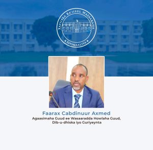 Mudane Faarax Cabdinuur Axmed, Agaasimaha Guud ee Wasaaradda Howlaha Guud, Dib-u-dhiska iyo Guriyeynta.