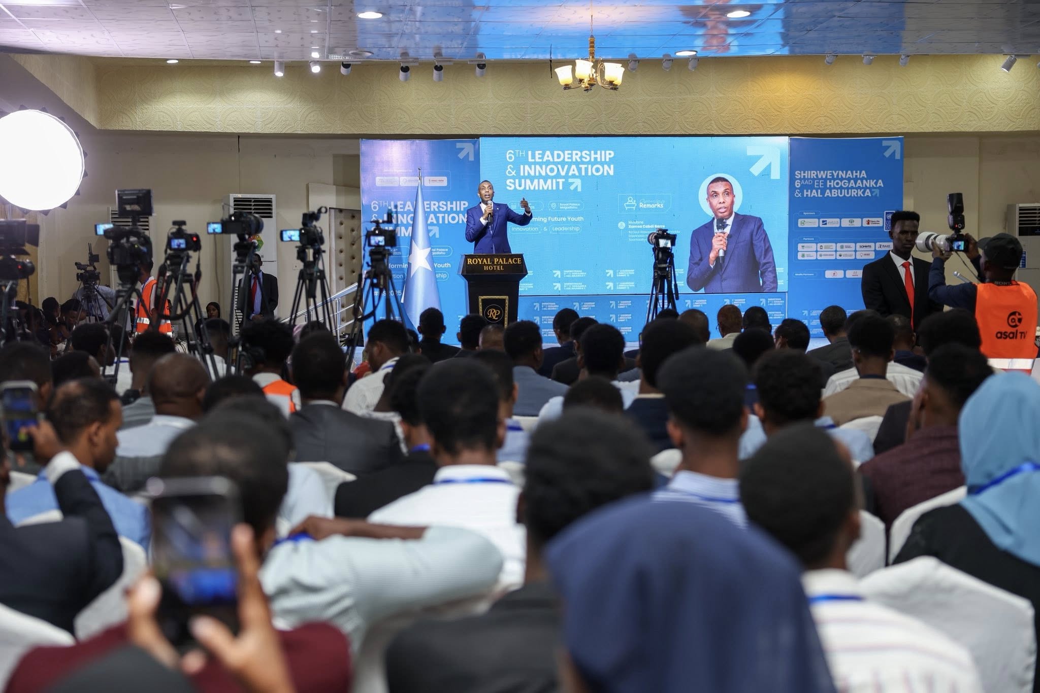 Ra’iisul Wasaaraha Xukuumadda Jamhuuriyadda Federaalka Soomaaliya, Mudane Xamsa Cabdi Barre, oo Daah-furay Shirweynaha 6-aad ee Hoggaanka iyo Hal-Abuurka Dhallinyarada Soomaaliyeed, ayaa adkeeyey muhiimadda ay Qaranka u leedahay dhiirigelinta dhallinyarada Soomaaliyeed iyo hal-abuurkooda.
