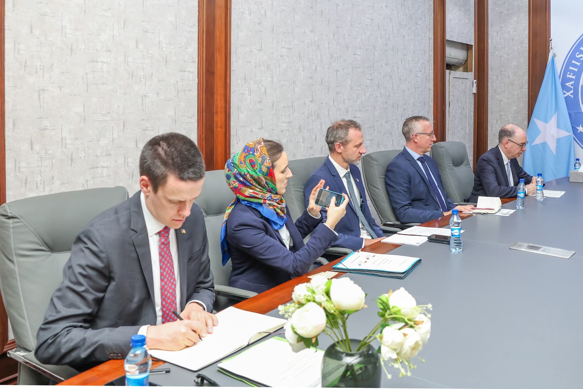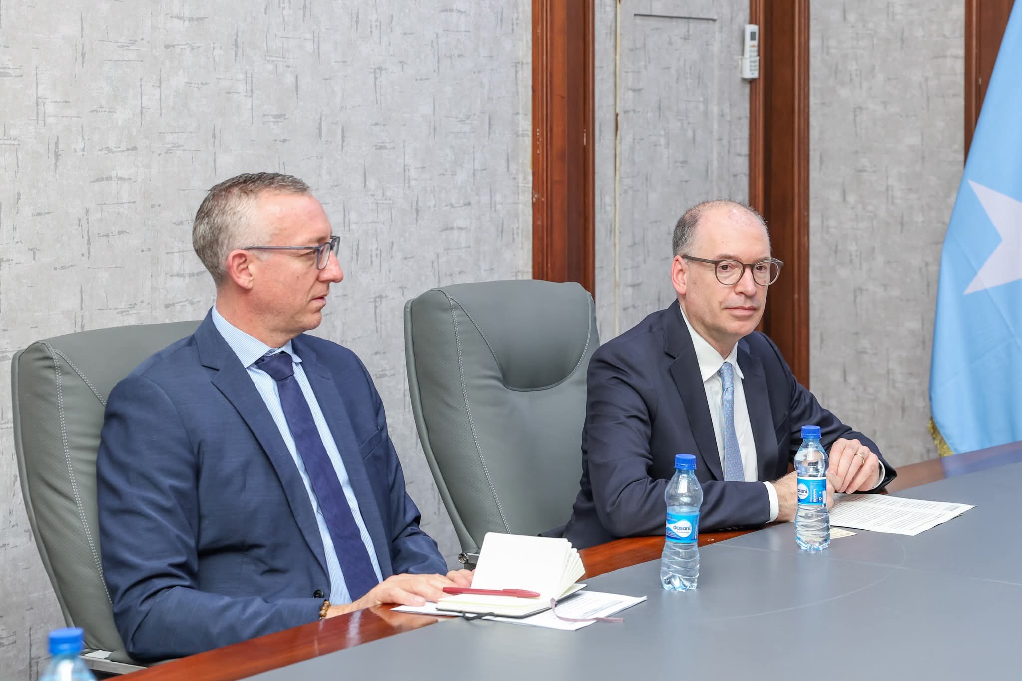 Ra’iisul Wasaaraha Xukuumadda Jamhuuriyadda Federaalka Soomaaliya, Mudane Xamsa Cabdi Barre, ayaa xafiiskiisa kulan kula yeeshay wafdi uu hoggaaminayo Wasiiru-dowlaha Iskaashiga Dhaqaalaha iyo Horumarinta ee Dowladda Jarmalka Mudane Niels Annen, iyo Safiirka Jamhuuriyadda Jarmalka Mudane Sebastian Groth, waxa ayna si qotodheer uga wada hadleen danaha ka dhaxeeya labada dal iyo qodobo kale.