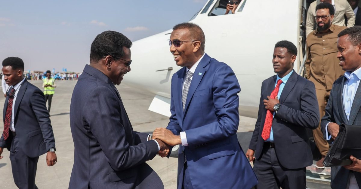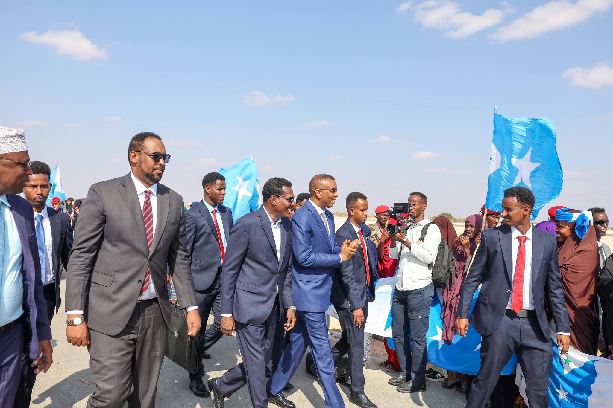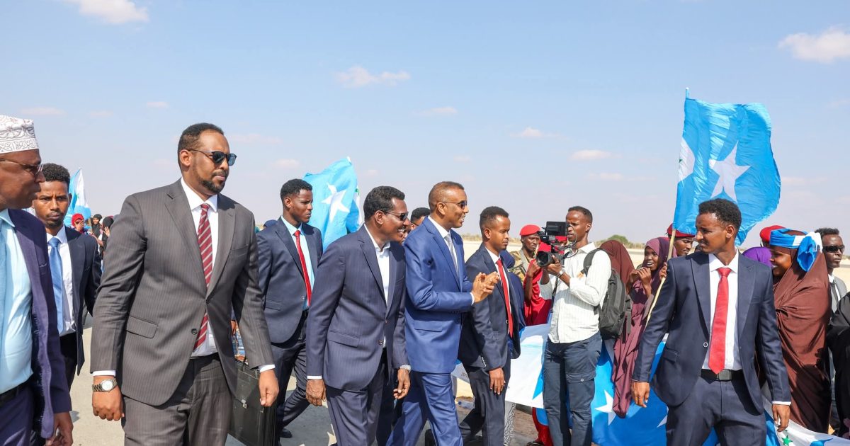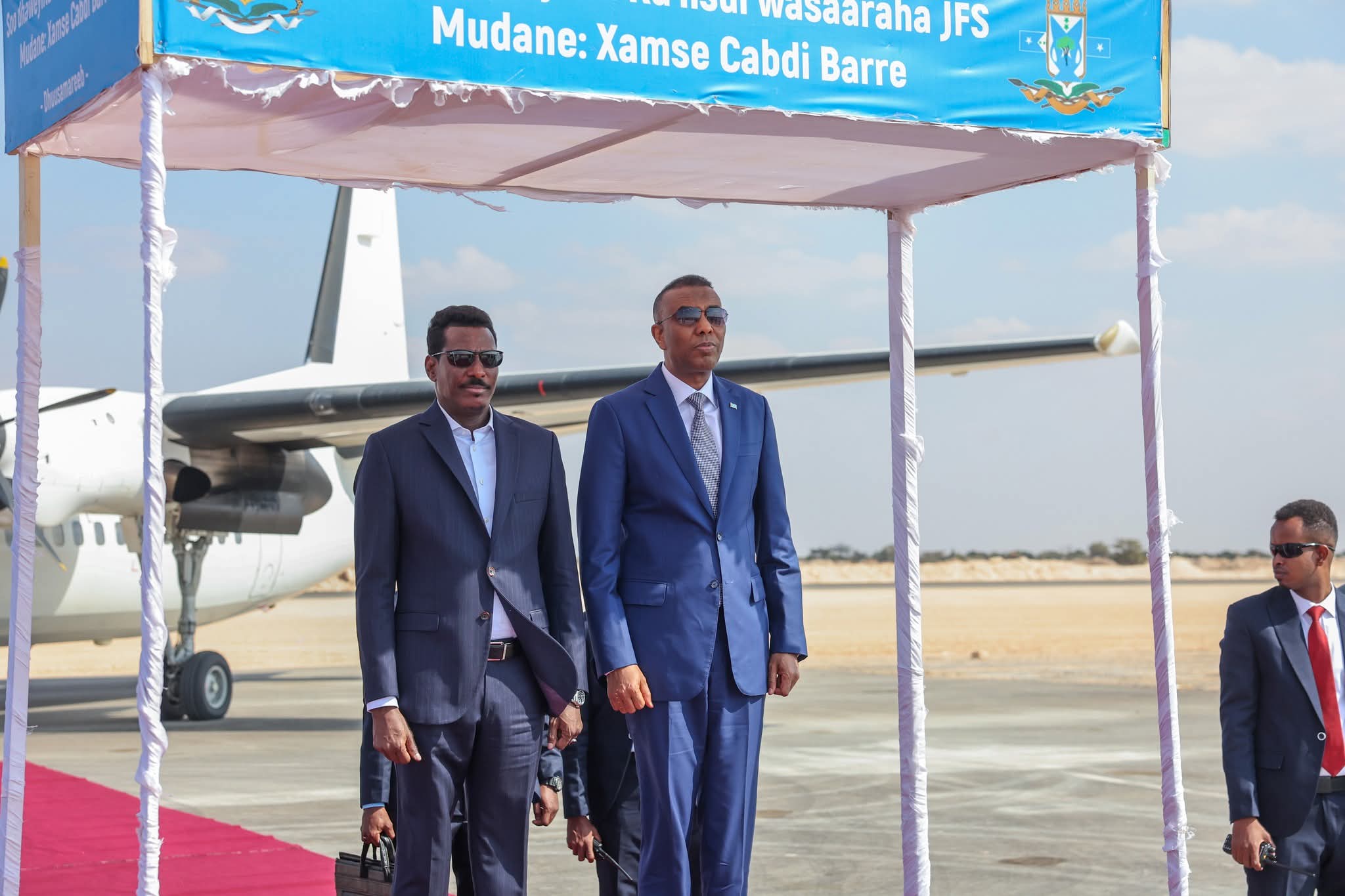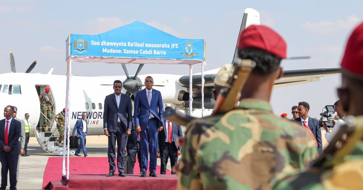 Dhuusamareeb, Khamiis, 01 Janaayo 2026: —Ra’iisul Wasaaraha Xukuumadda Jamhuuriyadda Federaalka Soomaaliya, Mudane Xamsa Cabdi Barre, ayaa maanta soo gaaray magaalada Dhuusamareeb, caasimadda Dowlad-goboleedka Galmudug, halkaas oo ay si diirran ugu soo dhaweeyeen Madaxweynaha Dowlad Goboleedka Galmudug, Mudane Axmed Cabdi Kaariye, Madaxweyne ku-xigeenka, xubno ka tirsan Golaha Wasiirrada Galmudug, iyo qeybaha kala duwan ee bulshada.