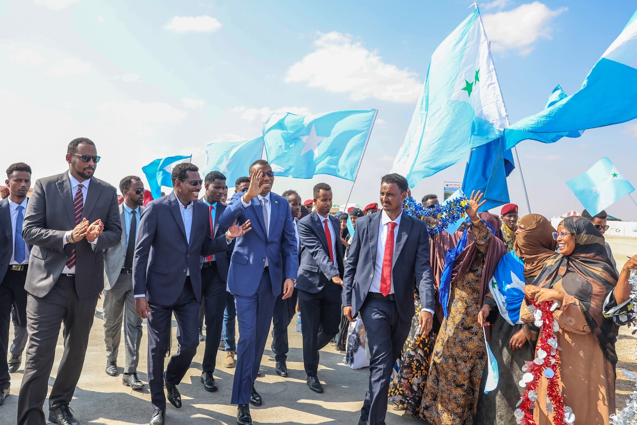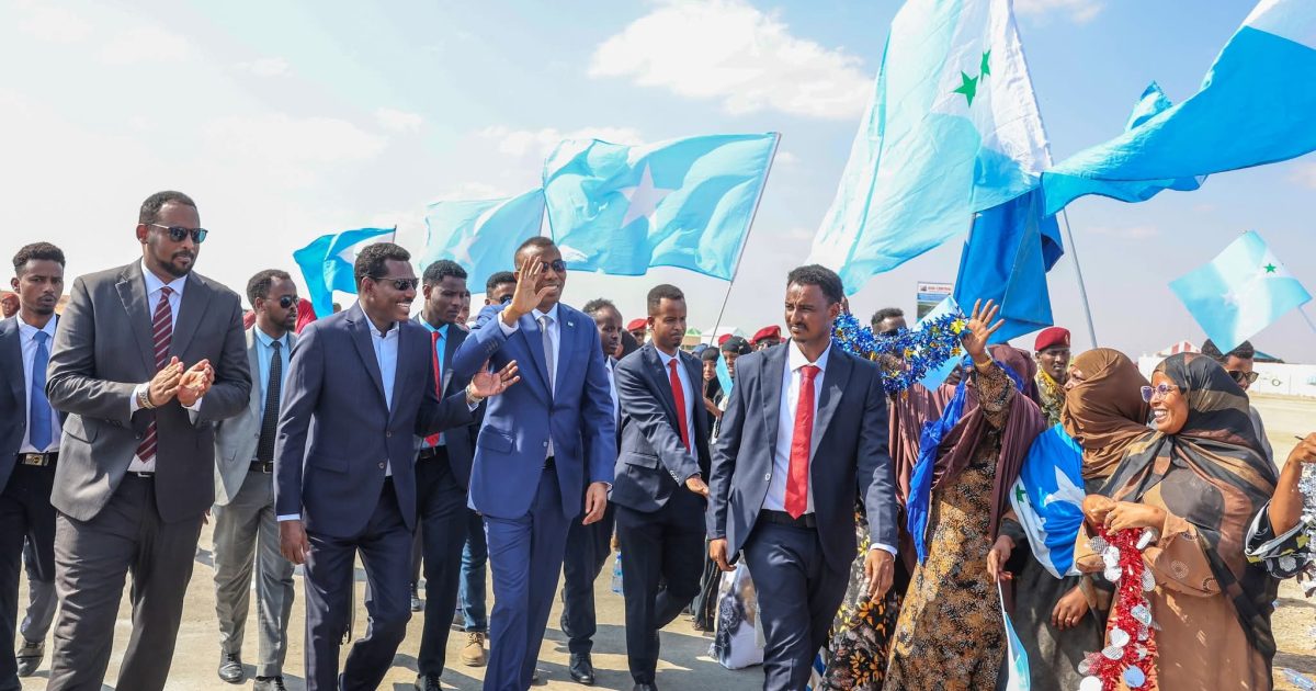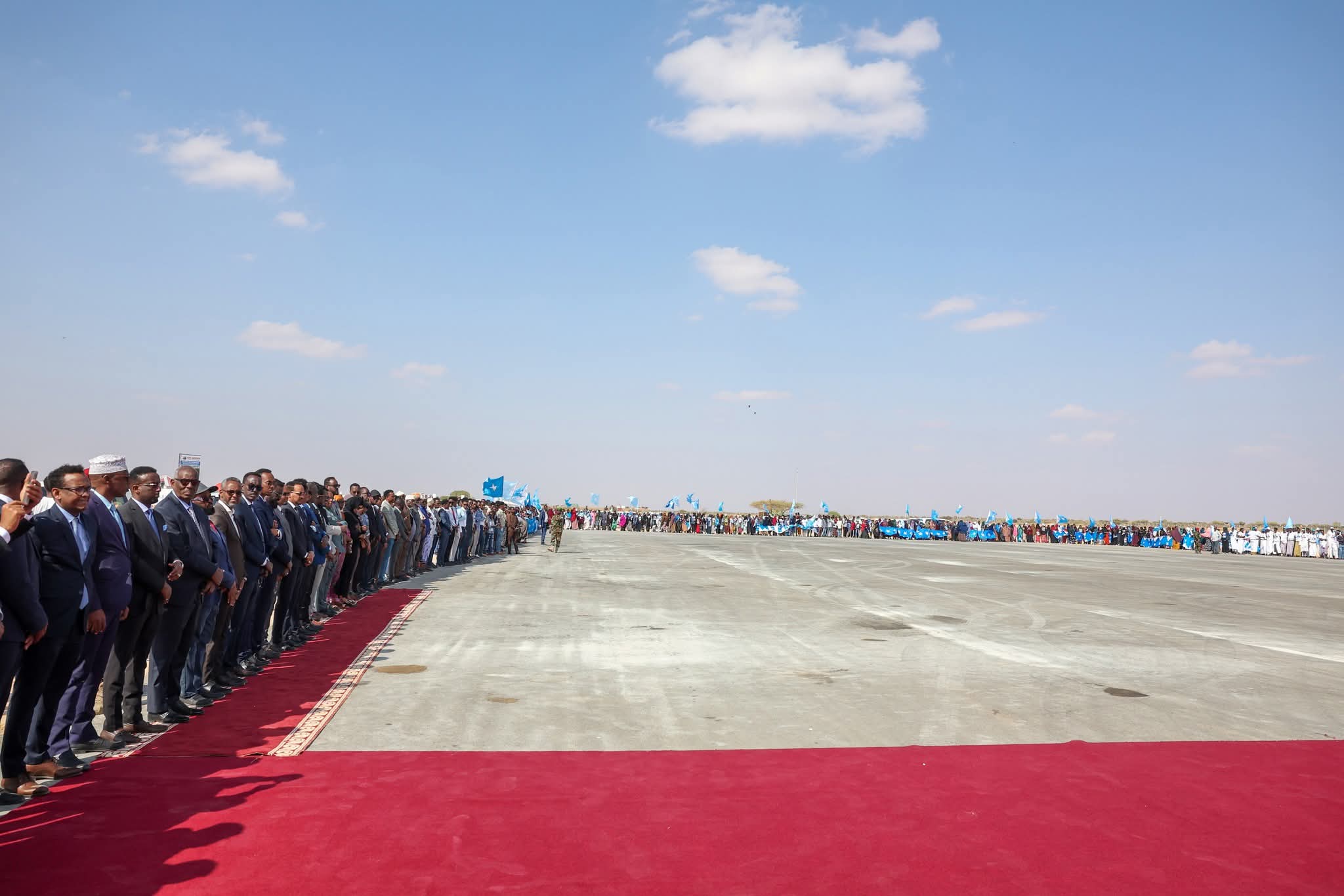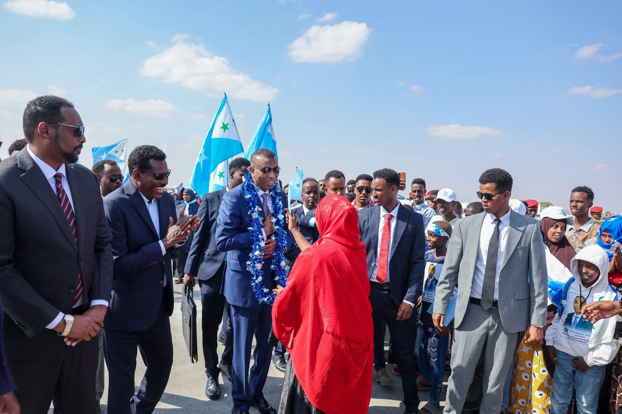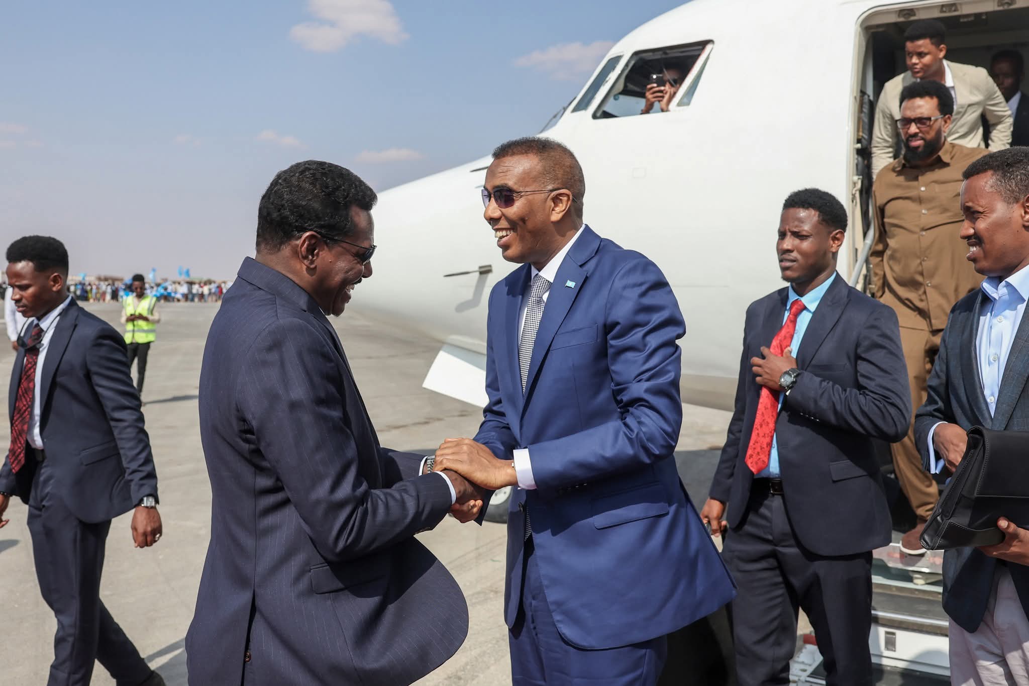 Dhuusamareeb, Khamiis, 01 Janaayo 2026: —Ra’iisul Wasaaraha Xukuumadda Jamhuuriyadda Federaalka Soomaaliya, Mudane Xamsa Cabdi Barre, ayaa maanta soo gaaray magaalada Dhuusamareeb, caasimadda Dowlad-goboleedka Galmudug, halkaas oo ay si diirran ugu soo dhaweeyeen Madaxweynaha Dowlad Goboleedka Galmudug, Mudane Axmed Cabdi Kaariye, Madaxweyne ku-xigeenka, xubno ka tirsan Golaha Wasiirrada Galmudug, iyo qeybaha kala duwan ee bulshada.