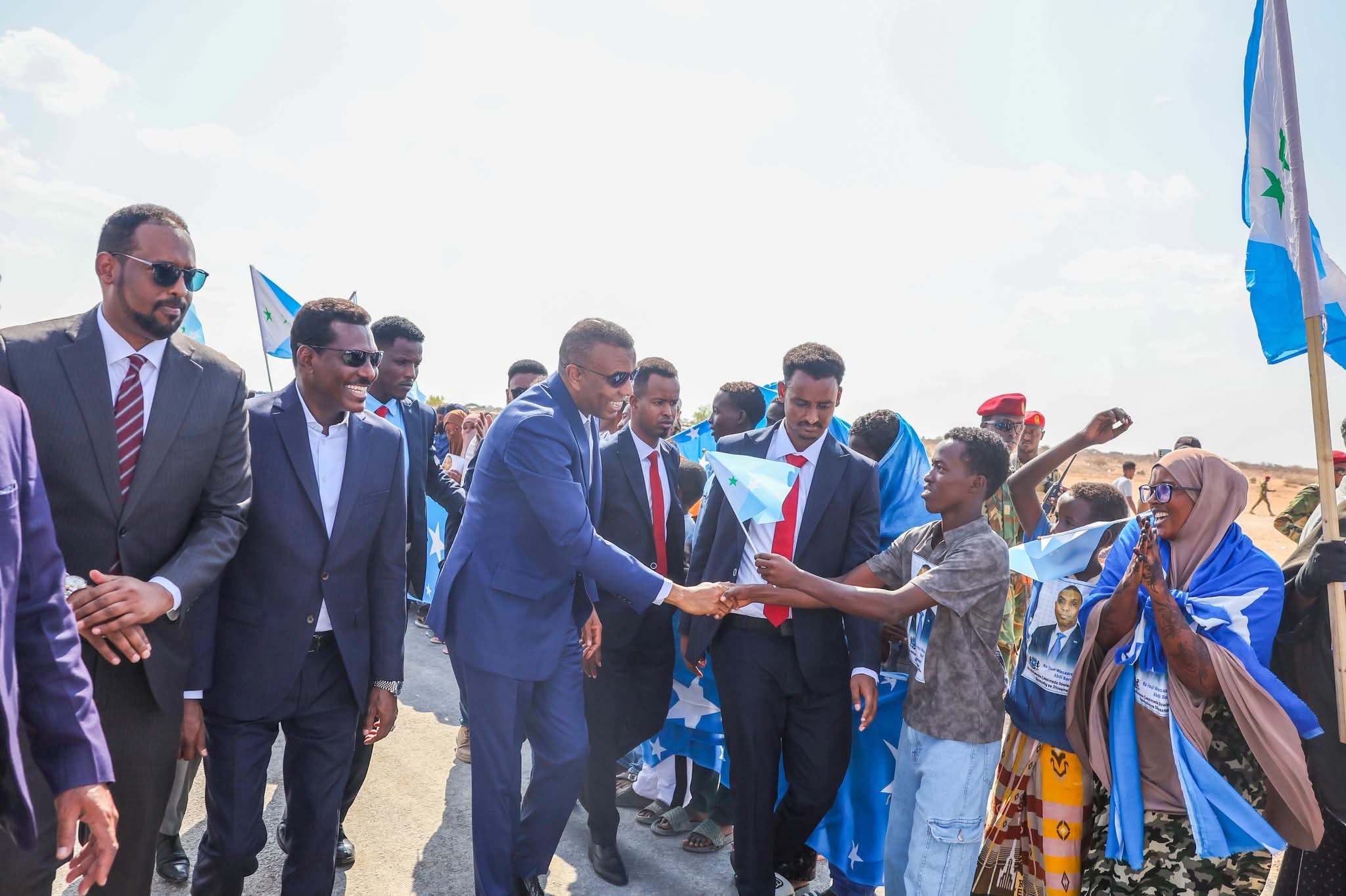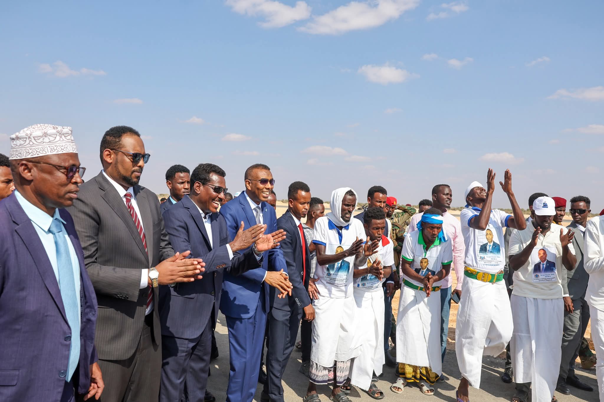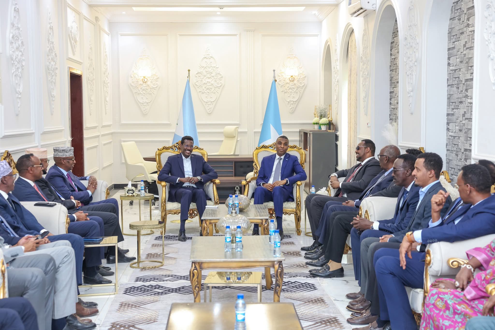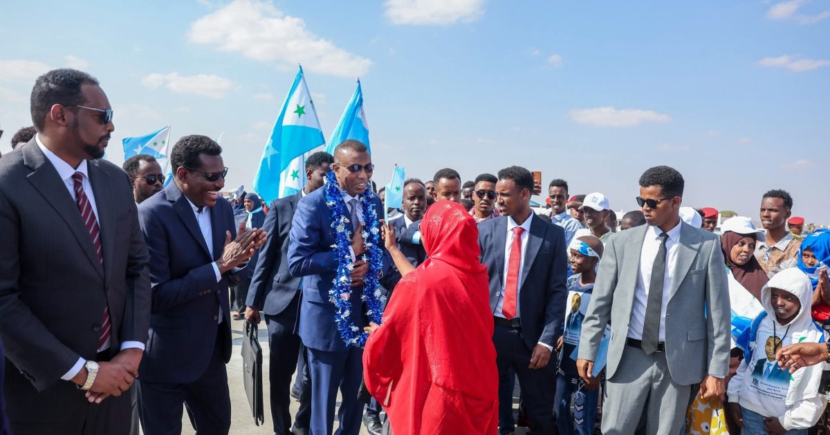 Dhuusamareeb, Khamiis, 01 Janaayo 2026: —Ra’iisul Wasaaraha Xukuumadda Jamhuuriyadda Federaalka Soomaaliya, Mudane Xamsa Cabdi Barre, ayaa maanta soo gaaray magaalada Dhuusamareeb, caasimadda Dowlad-goboleedka Galmudug, halkaas oo ay si diirran ugu soo dhaweeyeen Madaxweynaha Dowlad Goboleedka Galmudug, Mudane Axmed Cabdi Kaariye, Madaxweyne ku-xigeenka, xubno ka tirsan Golaha Wasiirrada Galmudug, iyo qeybaha kala duwan ee bulshada.