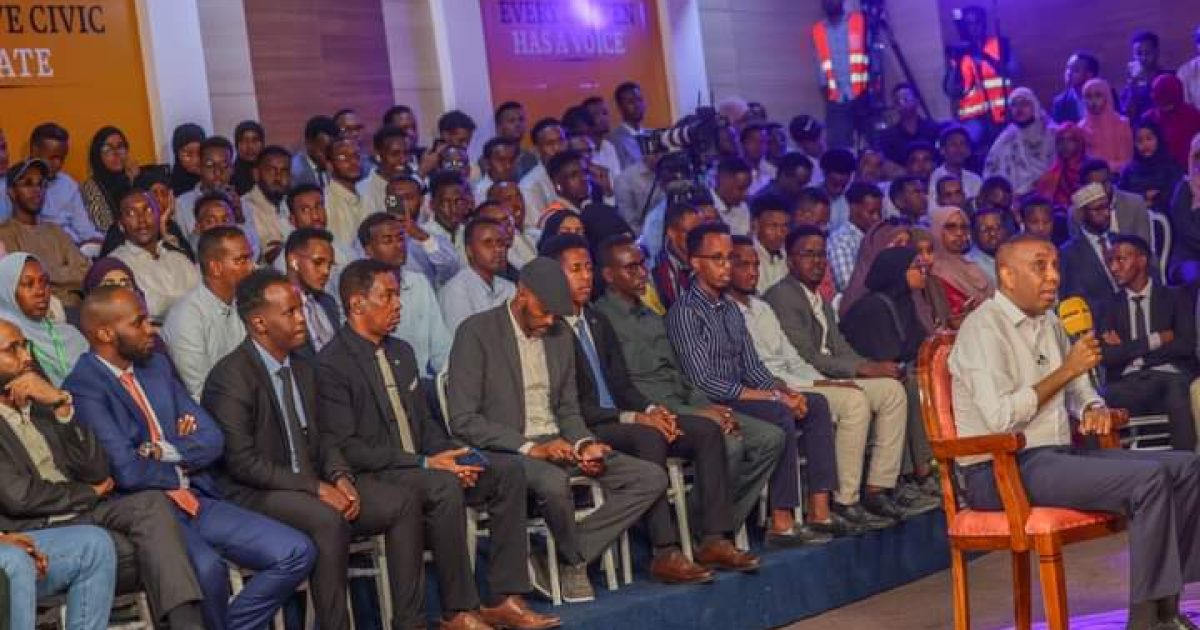Ra’iisul Wasaaraha Xukuumadda Federaalka Soomaaliya Mudane Xamsa Cabdi Barre, ayaa ka qeyb-galay kulan dadweyne oo su’aallo lagaga waydiinayey waxqabadka Xukuumadda DanQaran oo jirsatay labo sano.