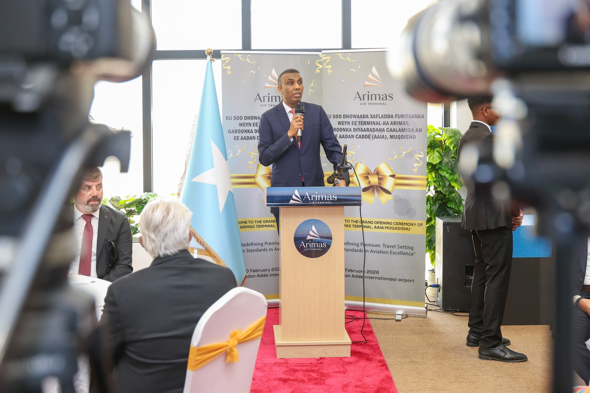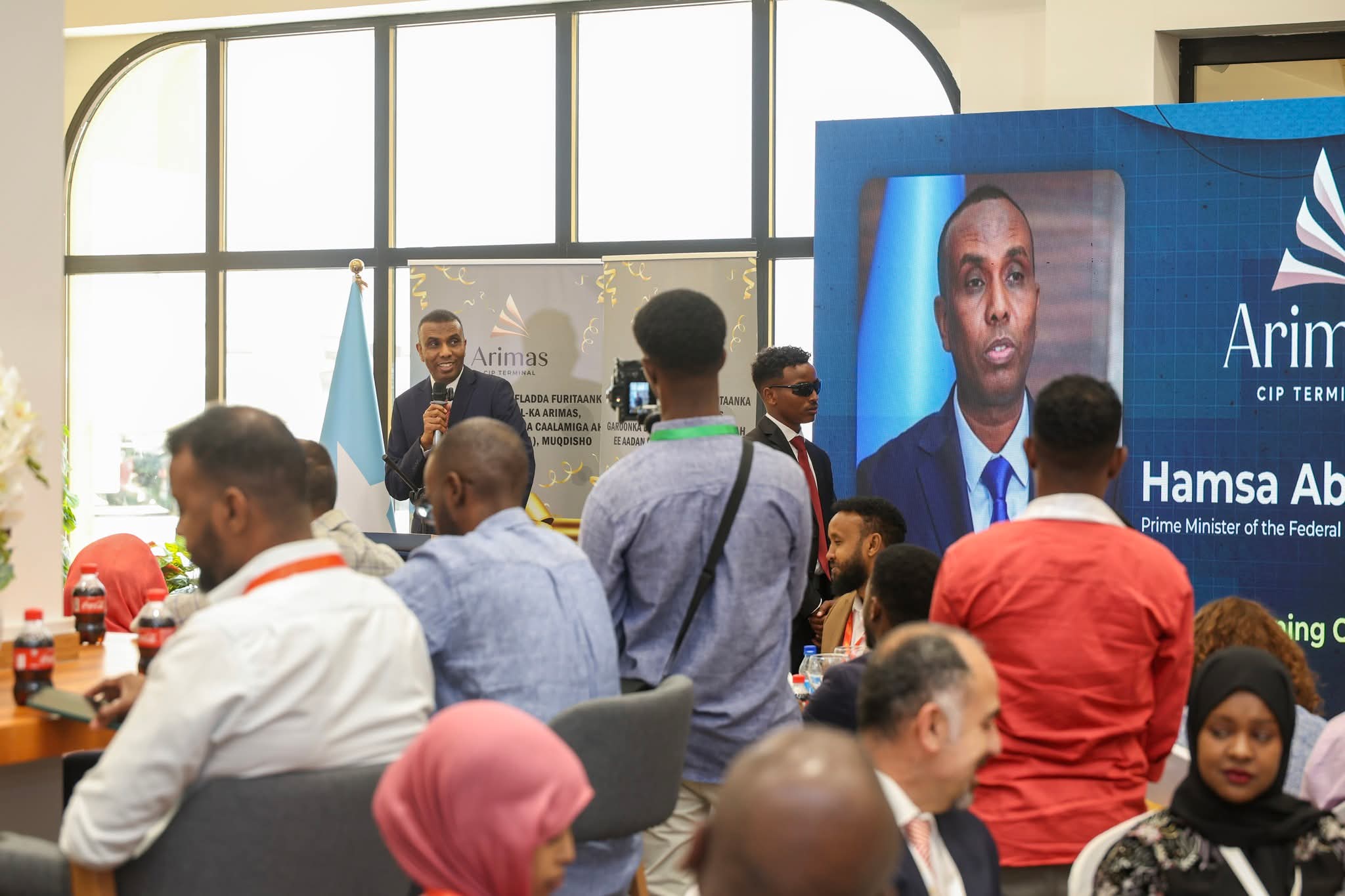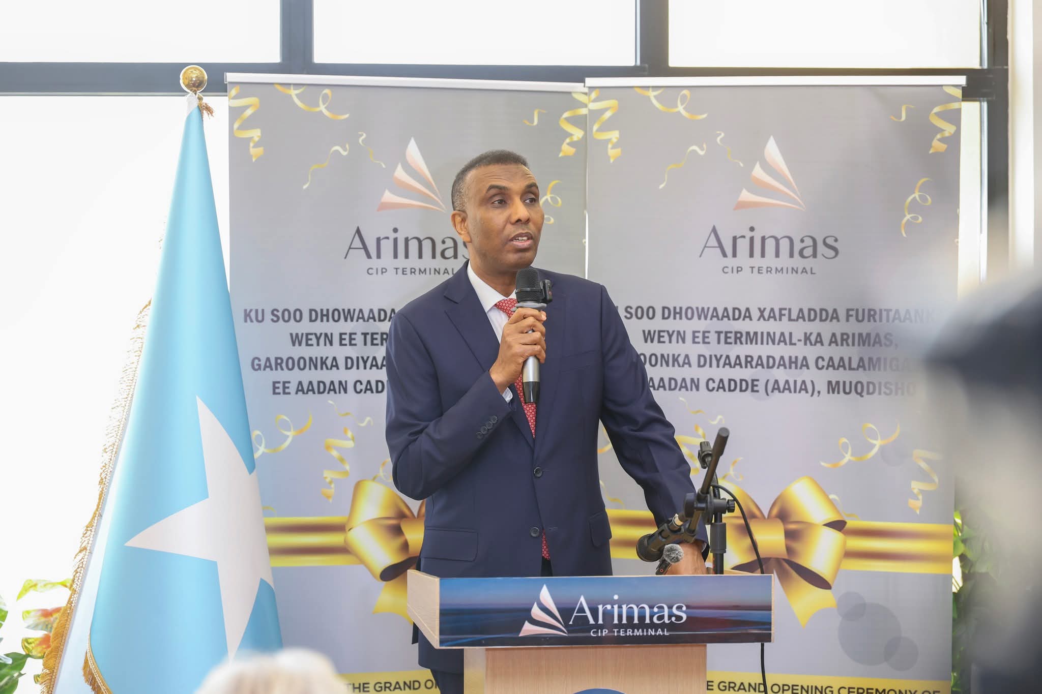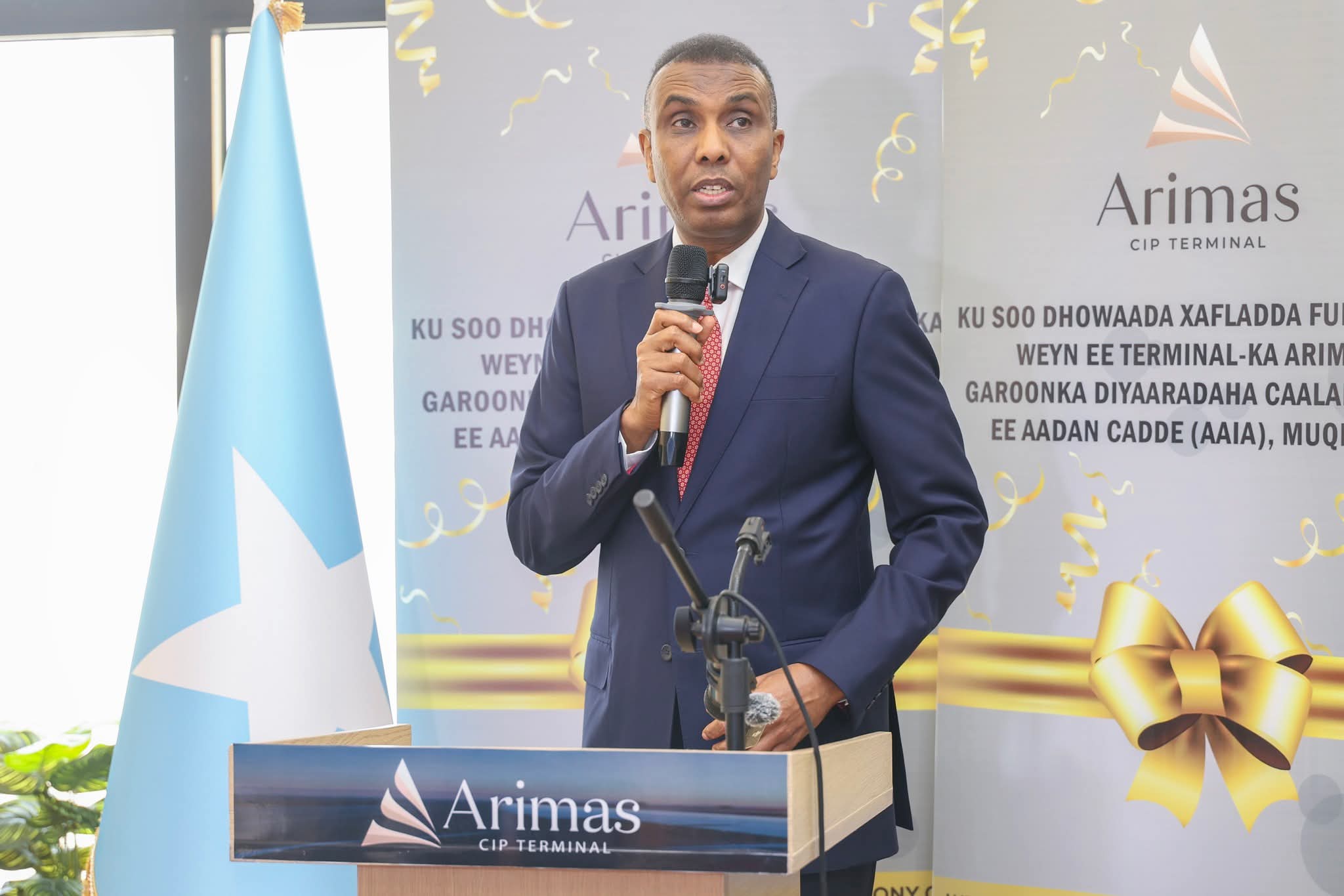 Ra’iisul Wasaaraha Xukuumadda Jamhuuriyadda Federaalka Soomaaliya, Mudane Xamsa Cabdi Barre, ayaa xarigga ka jaray Terminaalka cusub ee Arimas, oo laga hirgeliyay Garoonka Diyaaradaha Caalamiga ah ee Aadan Cabdulle (AAIA) ee magaalada Muqdisho.