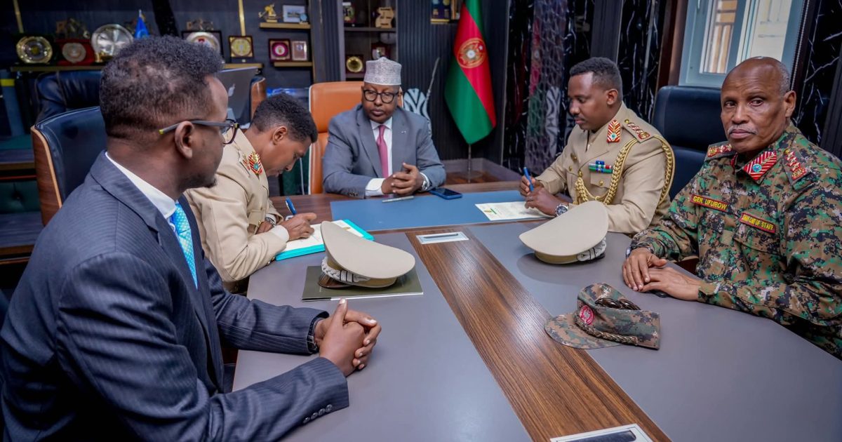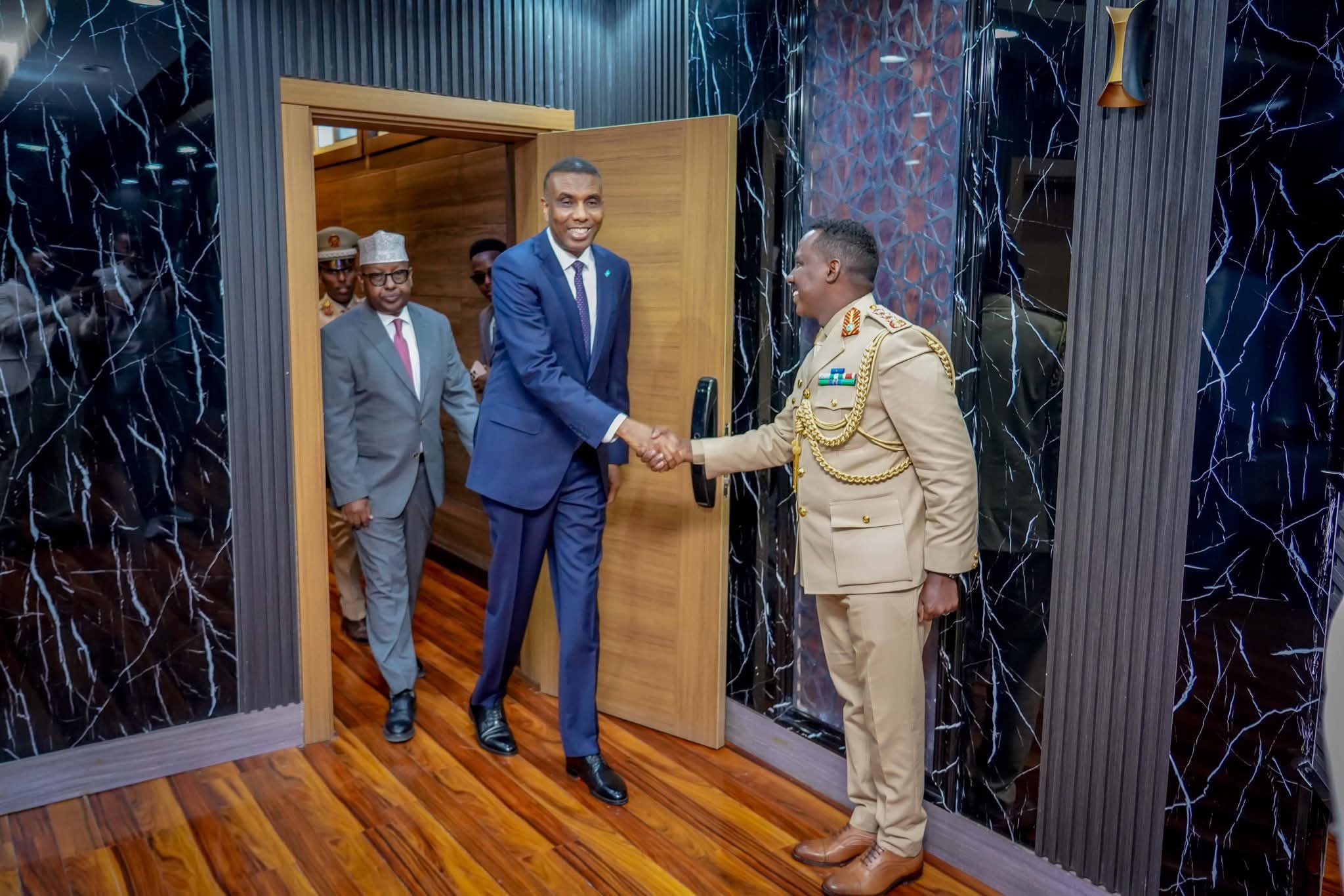 Ra’iisul Wasaaraha Xukuumadda Federaalka Soomaaliya, Mudane Xamse Cabdi Barre, ayaa ka qeyb galay munaasabadda xil-wareejinta Taliyaha Ciidanka Xoogga Dalka Soomaaliyeed oo ka dhacday xarunta Wasaaradda Gaashaandhigga ee Soomaaliya, taas oo si rasmi ah loogu kala wareejiyay hoggaaminta ciidanka.