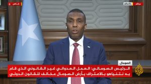 Ra’iisul Wasaaraha Soomaaliya wareysiga uu siiyay Telefishinka Al-Jasiira sidoo kale wuxuu ku sheegay in ujeedka Netanyahu u gaaray go’aanka aqoonsi ku sheega uu yahay abuurista saldhigyo ciidan si uu u maamulo marin-biyoodka Baabul Mandab, tilaabadaas oo Xukuumadda Soomaaliya aysan marnaba aqbalayn.