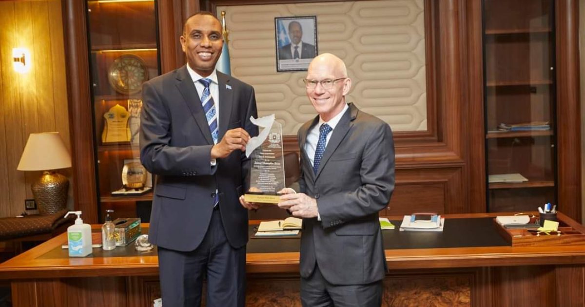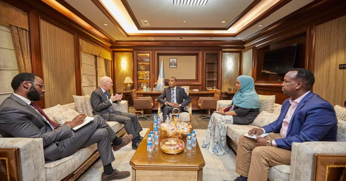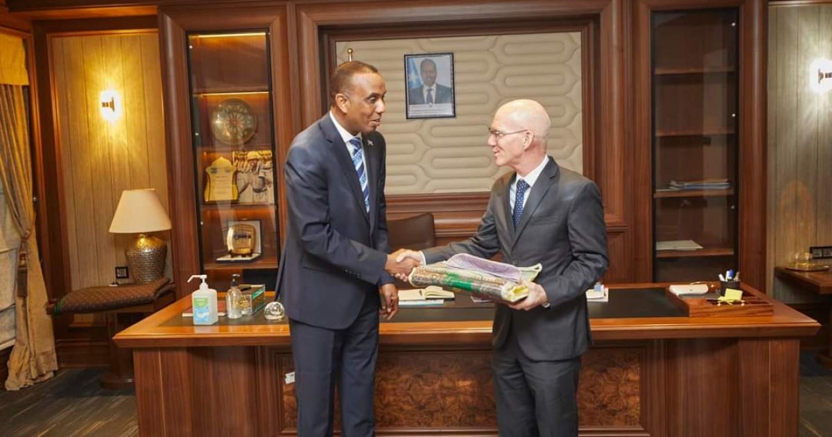 Ra’iisul Wasaaraha Xukuumadda Federaalka Soomaaliya, Mudane Hamza Abdi Barre, ayaa maanta xafiiskiisa ku qaabilay Wakiilka Gaarka ah ee Xoghayaha Guud ee Qaramada Midoobay u qaabilsan Soomaaliya, James Swan.