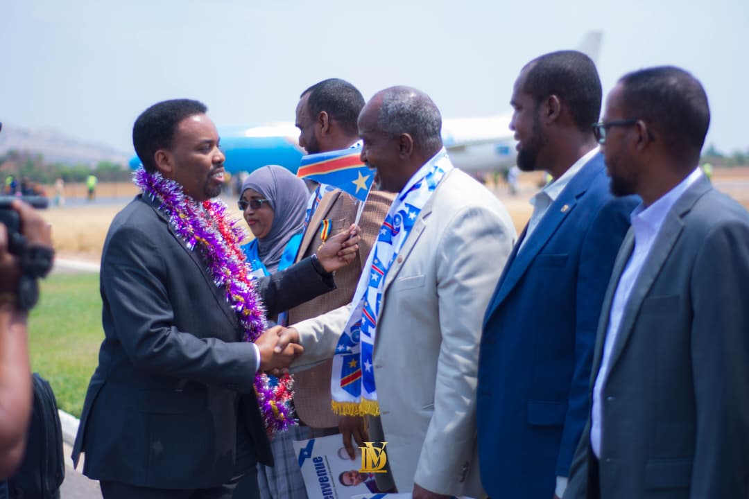 Lubumbashi, Kongo DRC, Octoober 24, 2025: Wafdi uu hogaaminayey Safiirka Dowladda Soomaaliya ee dalka Tanzania iyo EAC, Mudane Ilyas Cali Xasan ayaa si weyn loogu soo dhoweeyey magaalada Lubumbashi ee ka tirsan gobolka Haut-Katanga dalka DRC Kongo, Masuuliyiin ka tirsan Dowladda DRC Kongo iyo bulshada Soomaaliyeed ee halkaas ku dhaqan ayaa garoonka diyaaradaha ku soo dhoweeyey danjiraha.