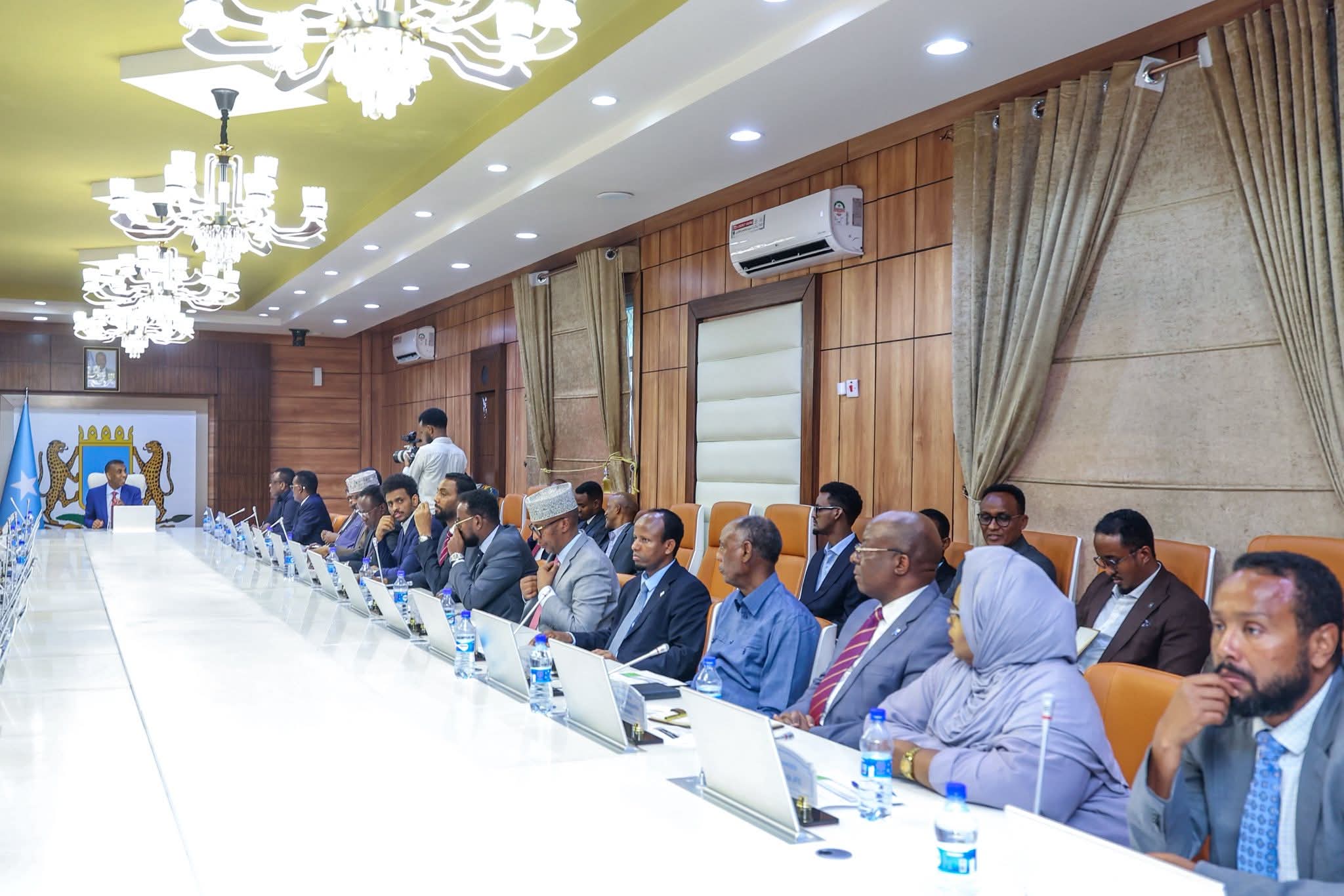 Kulanka golaha oo uu guddoomiyey Ra’iisul Wasaaraha Xukuumadda Jamhuuriyadda Federaalka Soomaaliya Mudane Xamsa Cabdi Barre, ayaa lagu soo bandhigay warbixinno ku saabsan amniga dalka iyo howlgallada ciidamada qalabka sida ay ku ciribtirayaan kooxaha Khawaarijta ah,deegaanka iyo dhir-beerista.