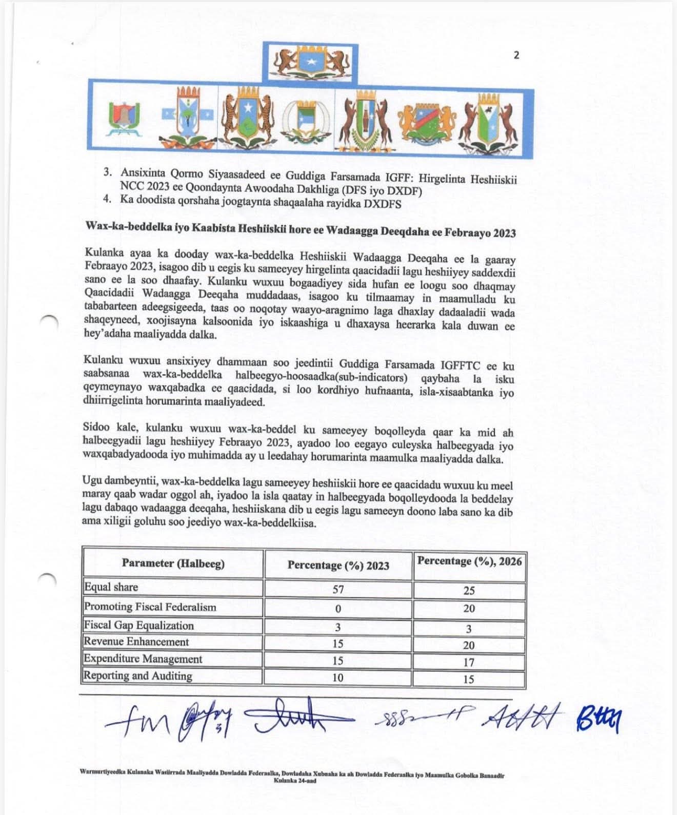 Warmurtiyeedkani wuxuu muujinayaa is-afgarad iyo go’aanno muhiim ah oo lagu xoojinayo wada-shaqeynta maaliyadeed, kobcinta dakhliga gudaha, horumarinta Maareynta Maaliyadda Dadweynaha (PFM), iyo dardargelinta is-waafajinta siyaasadaha maaliyadeed ee dalka.