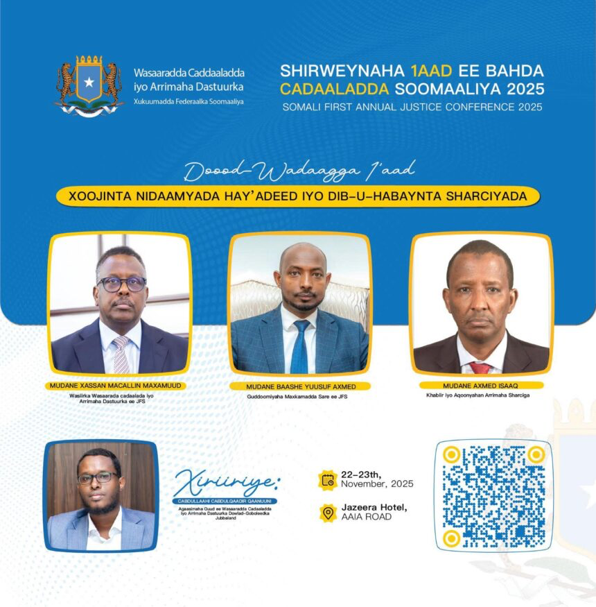 Waxaa goordhaw magaalada Muqdisho ka furmay Shirweynaha 1aad ee Bahda Caddaaladda Soomaaliyeed 2025 oo ah madal qaran oo lagu xoojinaayo tayada iyo hufnaanta cadaaladdeed ee dalka.