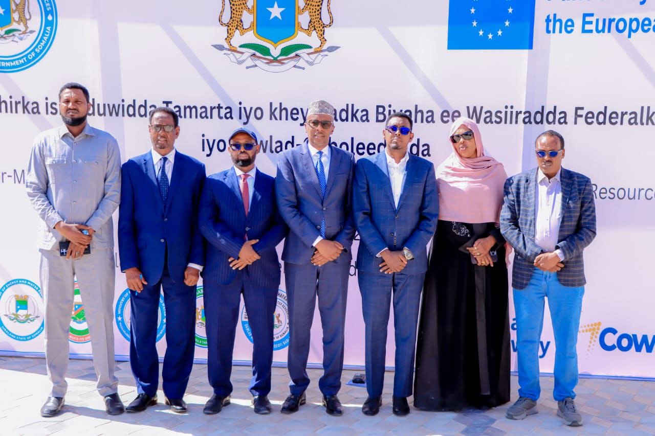 Wasiirka Wasaaradda Tamarta iyo Khayraadka Biyaha ee Xukuumadda Federaalka Soomaaliya (XFS), Mudane Cabdullaahi Bidhaan Warsame, oo ay weheliyaan Wasiiru-Dowlaha iyo...